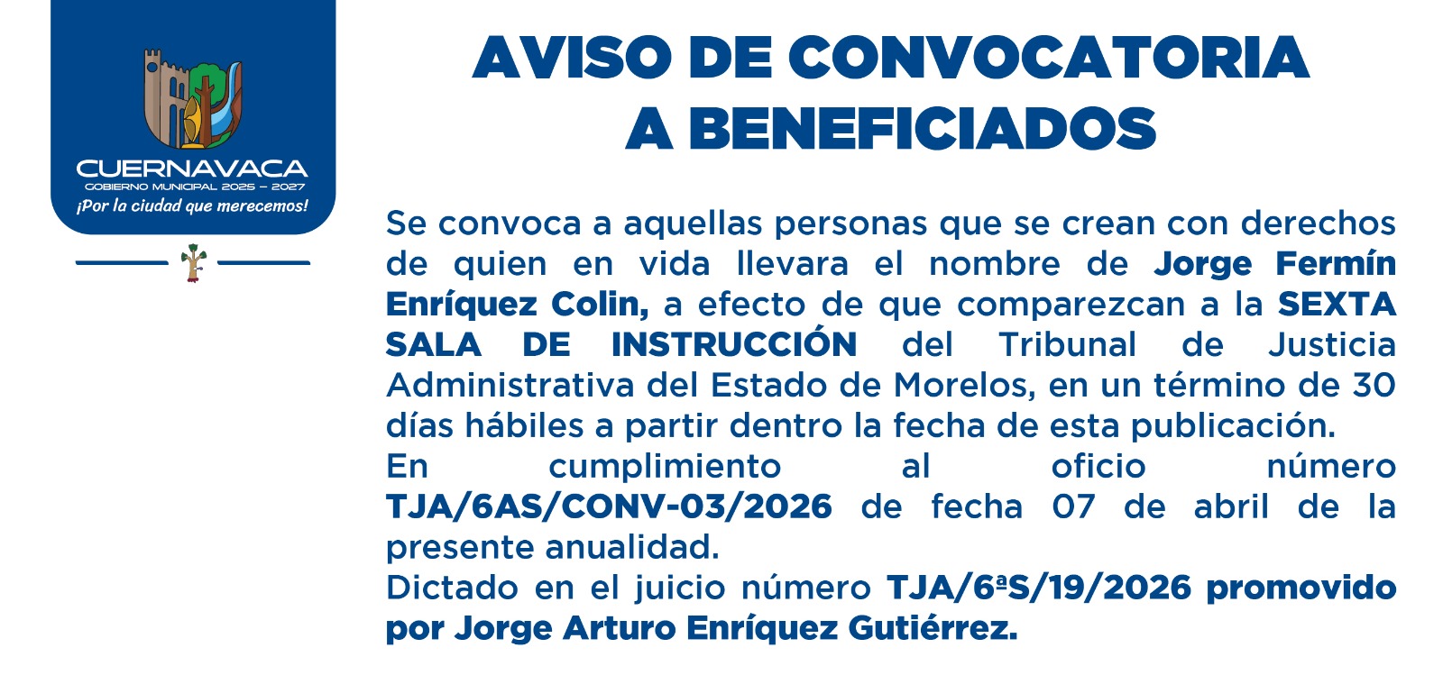 Hoy más que nunca, sumando esfuerzos y voluntades tenemos la oportunidad de hacer que nuestra ciudad renazca del caos y el abandono, entre todas y todos podemos lograr que nuestra querida Cuernavaca sea una tierra fértil y prospera, donde nuestros hijos vivan seguros y plenitud, el turismo resurja y quienes nos visitan se lleven un grato recuerdo en sus memorias, un lugar donde vivamos en armonía con respeto a la naturaleza, nos sintámonos orgullosos de la herencia histórica de nuestros 12 pueblos, nuestras raíces y cultura.