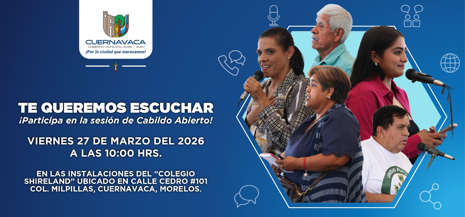 Hoy más que nunca, sumando esfuerzos y voluntades tenemos la oportunidad de hacer que nuestra ciudad renazca del caos y el abandono, entre todas y todos podemos lograr que nuestra querida Cuernavaca sea una tierra fértil y prospera, donde nuestros hijos vivan seguros y plenitud, el turismo resurja y quienes nos visitan se lleven un grato recuerdo en sus memorias, un lugar donde vivamos en armonía con respeto a la naturaleza, nos sintámonos orgullosos de la herencia histórica de nuestros 12 pueblos, nuestras raíces y cultura.
