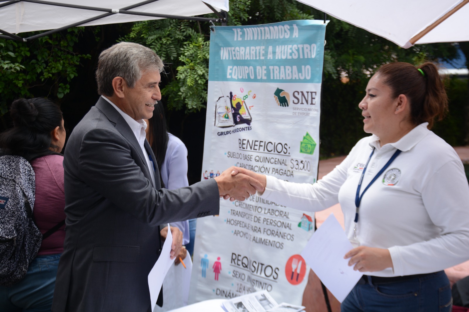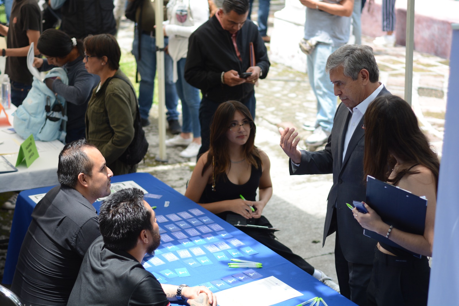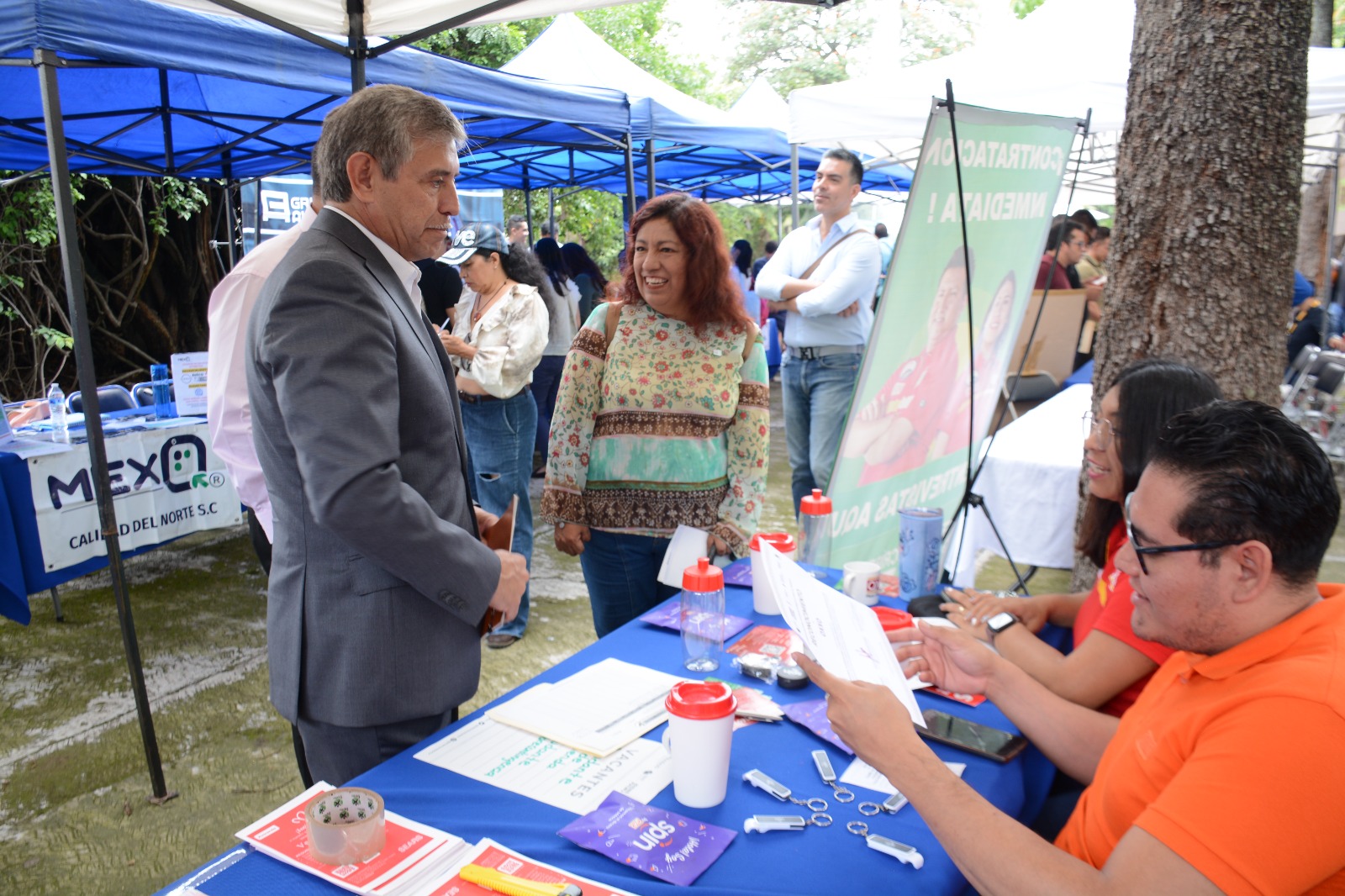 En presencia de cientos jóvenes y adultos que desde temprana hoy comenzaron con la búsqueda de empleo, refrendó que en Cuernavaca se suman a generar espacios de fortalecimiento económico de las personas, trabajando coordinadamente con las autoridades federales y estatales, ya que también en este tipo de ferias les otorgan la posibilidad de continuar con sus estudios a través del Instituto Nacional para la Educación de los Adultos (INEA), les brindan distintas capacitaciones para encontrar más fácilmente trabajo y los acercan con diversas dependencias como el Servicio de Administración Tributaria (SAT) para obtener su constancia de situación fiscal.