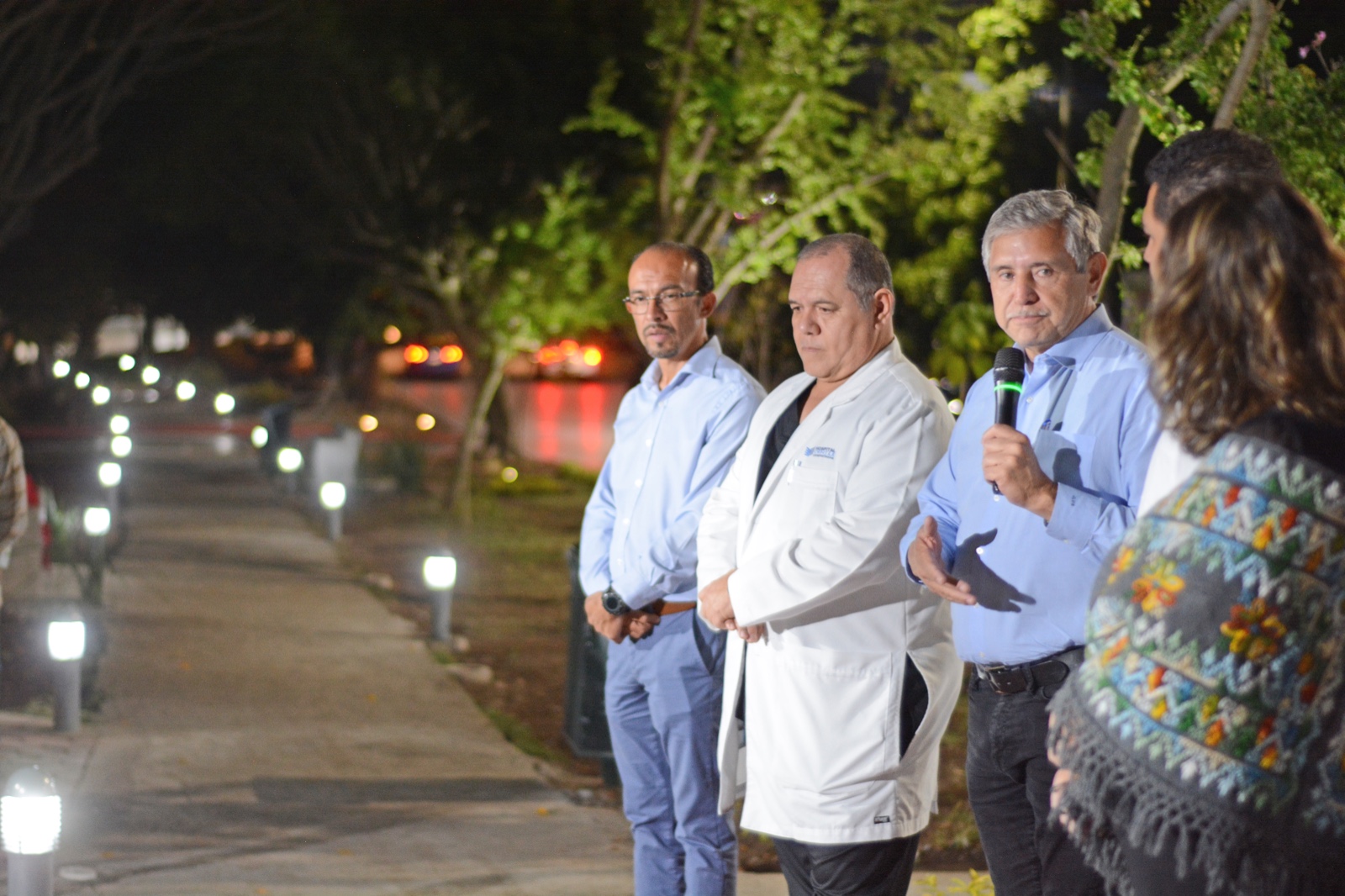 José Luis Urióstegui expresó su agradecimiento al centro médico que al decidir generosamente invertir en este espacio para el beneficio de todas las personas que deseen visitarlo, ya sea para sentarse o caminar a cualquier hora del día o de la noche, ya que la iluminación que colocaron se los permite, recuperando un espacio verde donde se puede disfrutar de la belleza de la Eterna Primavera.