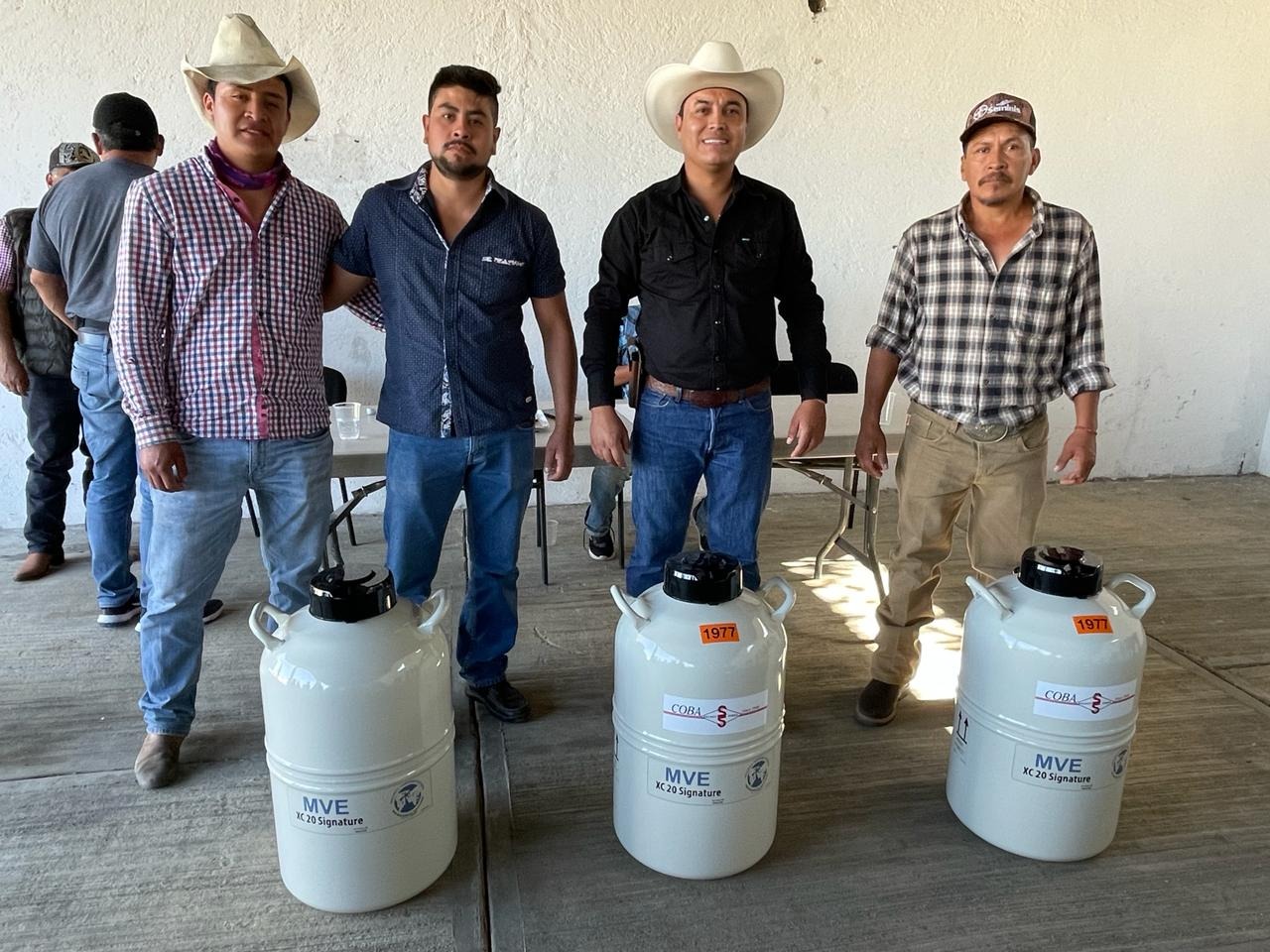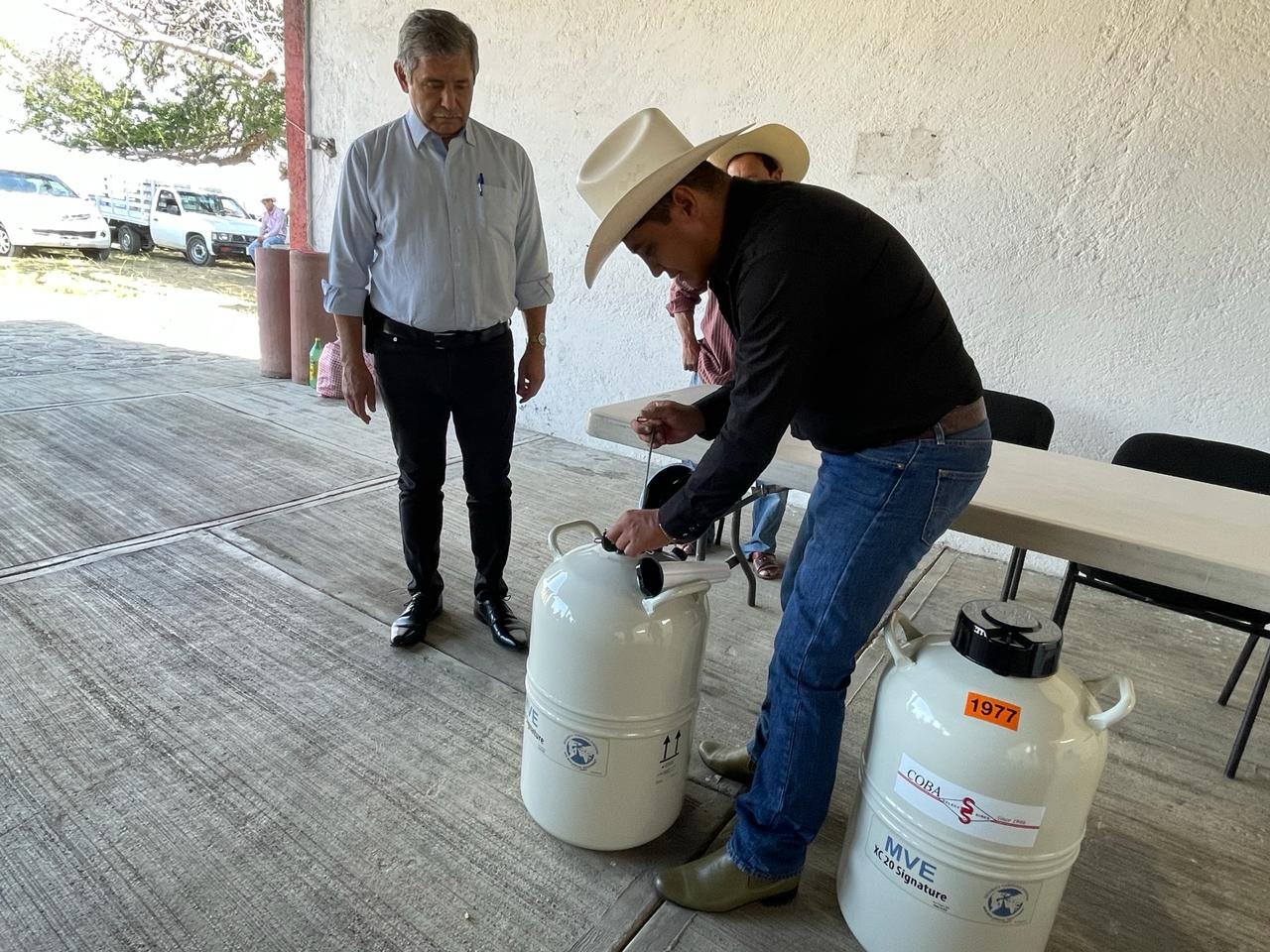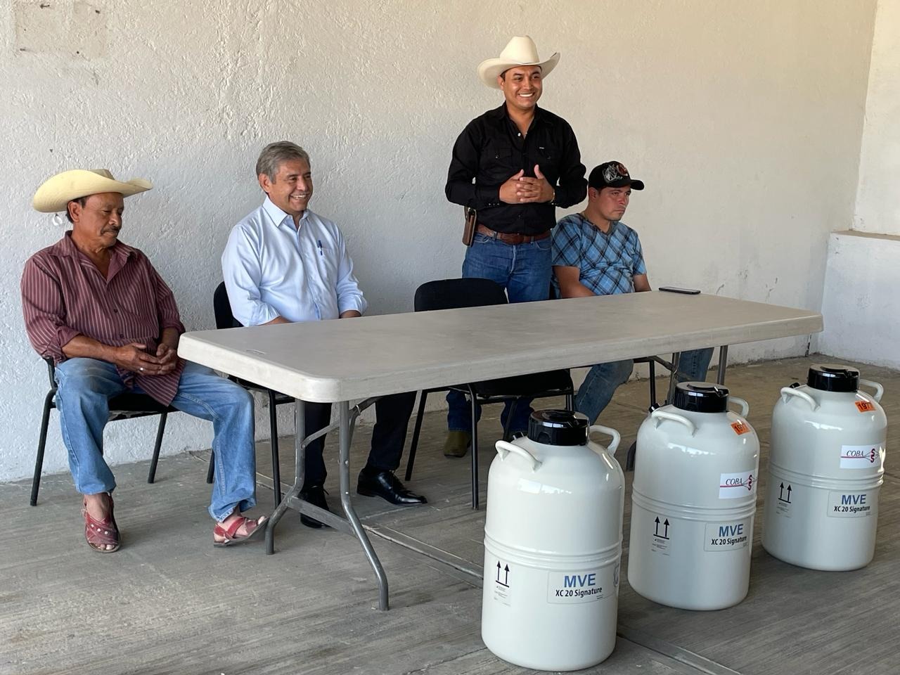En la Casa Ejidal de Santa María Ahuacatitlán y acompañado del presidente de la asociación y regidor de Cuernavaca, Christian Pérez Jaimes, el presidente municipal otorgó 3 Termos Criogénicos con capacidad para mil 200 dosis de material genético, semen y dosis de semen de las razas Suizo Europeo, Herford, Charoláis, Angun, Brahmán y Holstein.