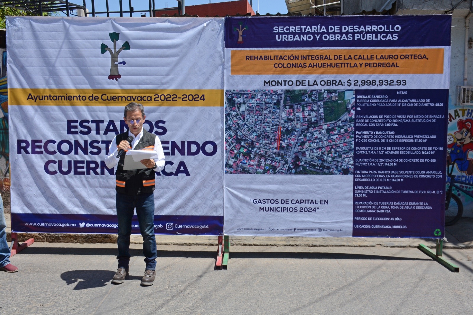 Por un periodo estimado de 45 días naturales la calle Lauro Ortega de las colonias Ahuehuetitla y Pedregal, será rehabilitada de manera integral al contemplar la repavimentación y construcción de banquetas y guarniciones, pero también el drenaje sanitario y una nueva línea de agua potable.
