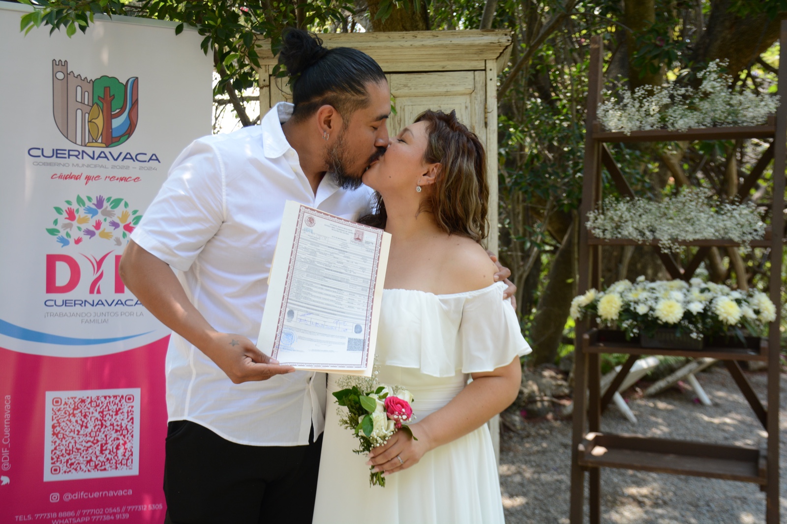 En esta iniciativa de la presidenta del DIF Cuernavaca que se realizó en coordinación con la Secretaría del Ayuntamiento, a través de las Oficialías del Registro Civil 01 y 03, así como con el apoyo de la iniciativa privada y la sociedad, los cónyuges tuvieron un rango de edad promedio de 25 a 35 años, siendo la pareja más joven de 19 años y la más grande de 82 años; además de parejas igualitarias que por algún motivo no habían formalizado su matrimonio, teniendo hoy certeza jurídica para que todos los integrantes de su familia cuenten con los mismos derechos y obligaciones.