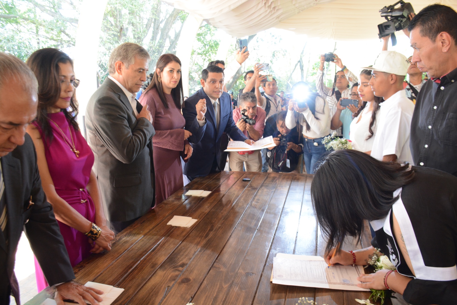 Cabe mencionar que los oficiales del Registro Civil 01 y del Registro Civil 03 oficiaron la ceremonia que concluyó con la entrega oficial de su acta de matrimonio en el mismo sitio.