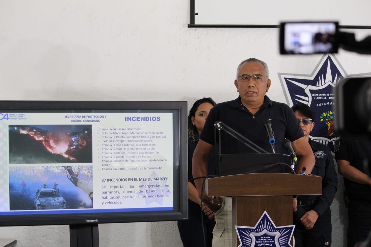 Ante representantes de medios de comunicación, el director del Cuerpo de Bomberos de Cuernavaca informó que en lo que va del mes de marzo han atendido 87 incendios en barrancas, pastizales, terrenos baldíos, casa habitación y vehículos en distintas colonias y poblados, siendo el último incendio reportado en la madrugada del 26 de marzo sobre el Puente 2000 de la colonia San Antón, donde realizaron los trabajos correspondientes para controlar la zona que abarcaba un terreno baldío de aproximadamente 400 metros.
