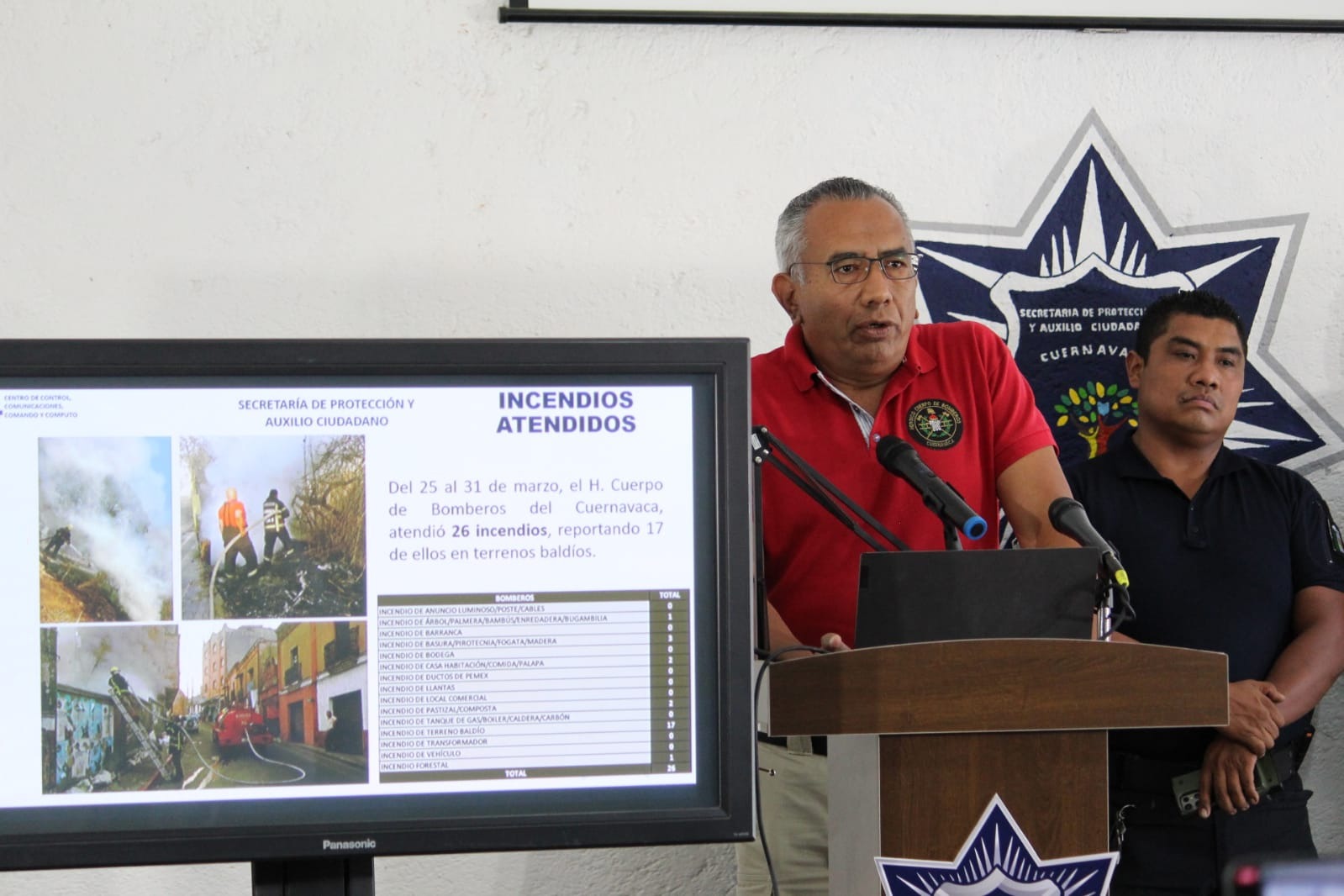 En conferencia de prensa, informó que durante el mes de marzo se tuvo un registro de 99 incendios, de los cuales 26 fueron solo durante la última semana del mes de marzo, 17 de ellos en terrenos baldíos como el registrado en calle Zarco de la colonia Centro, considerado el mayor riesgo hasta el momento por las propiedades colindantes, aunque se pudo atender en tiempo y forma.