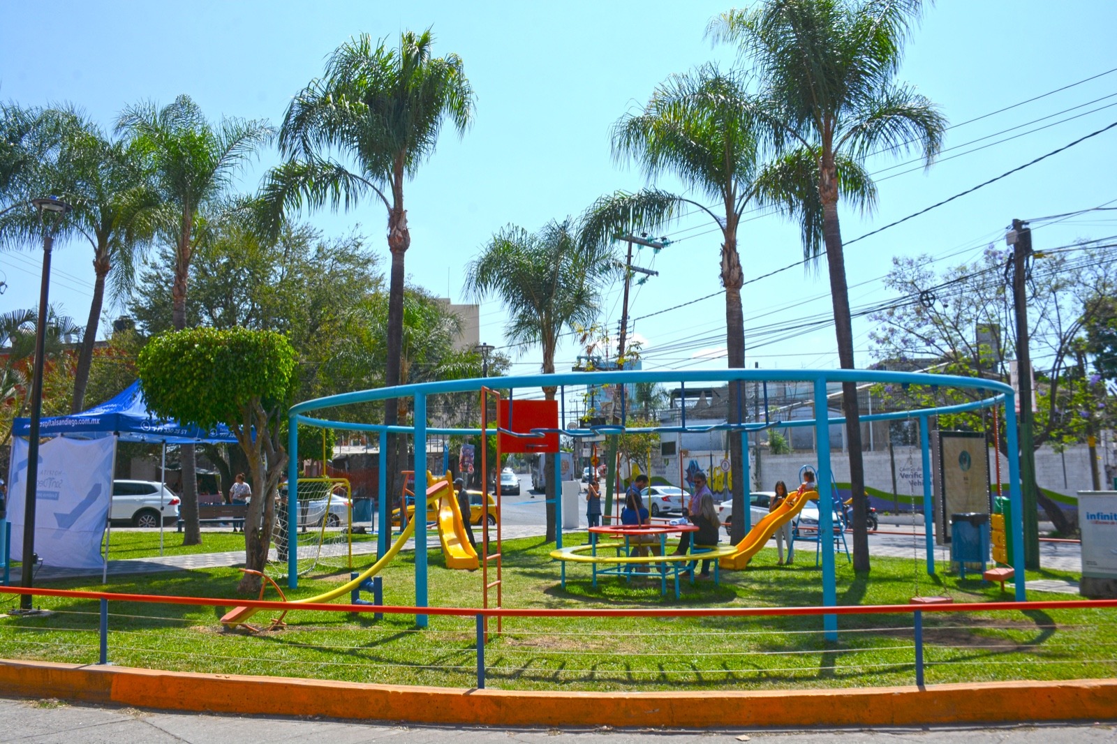 El secretario de Desarrollo Sustentable y Servicios Públicos resaltó la importancia para la administración municipal, contar con ciudadanos que aportan con este tipo de elementos para fomentar la convivencia social, toda vez que el Hospital San Diego se hizo cargo de la inversión de la obra que fue de 500 mil pesos, contemplando la colocación e instalación de juegos infantiles, de bancas, cámaras e iluminación, así como de la red WiFi.