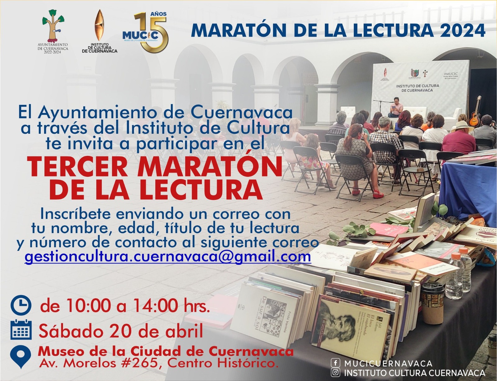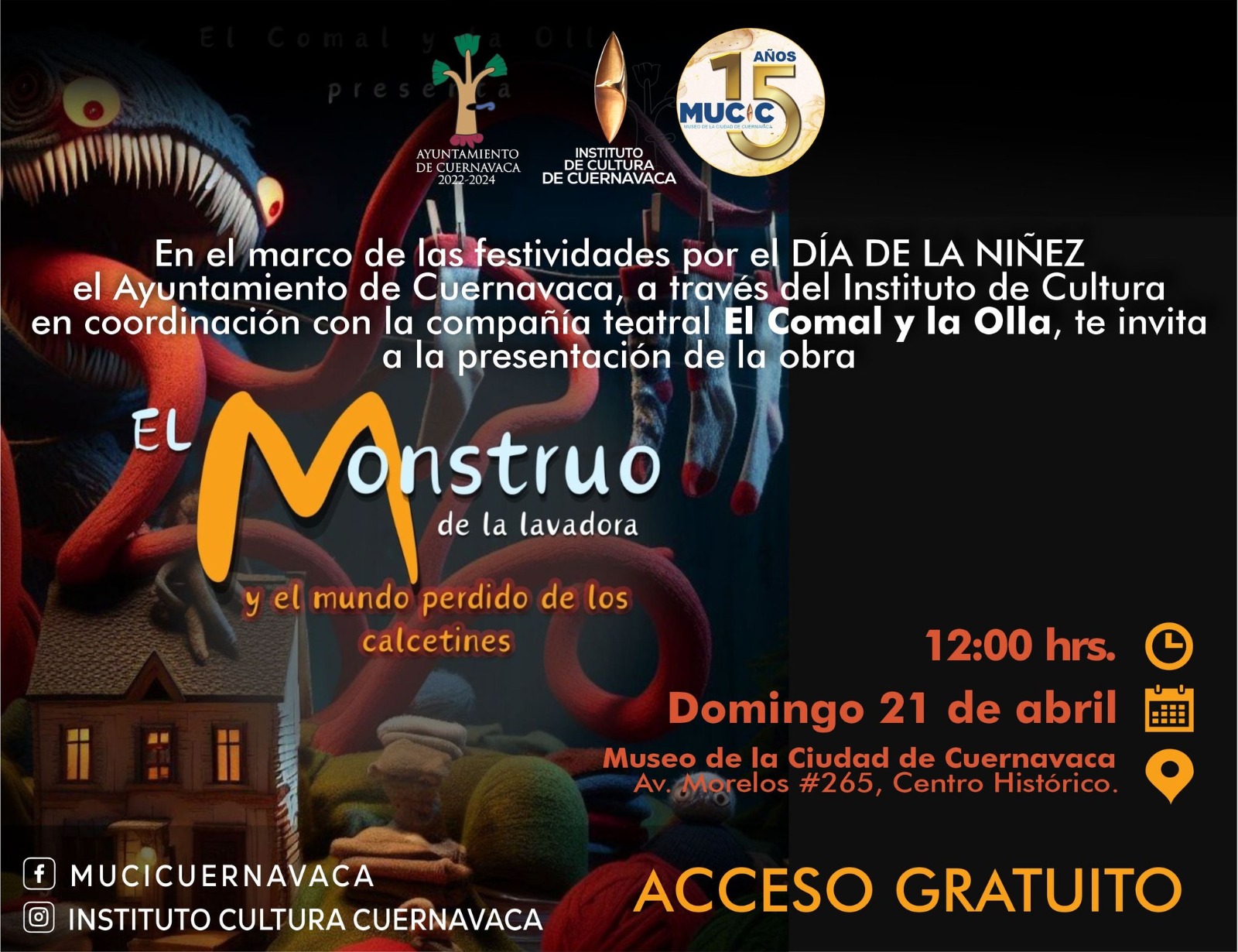 Pero las actividades no terminan aquí, ya que este fin de semana el Museo de la Ciudad de Cuernavaca (MuCiC) abre sus puertas a dos inauguraciones, la exposición Ciudades Futuras de Víctor Mora y Abezoodario de José Antonio Platas; mientras que el sábado se llevará a cabo el Tercer Maratón de Lectura de 10:00 a 14:00 horas y el domingo 21 de abril a las 12:00 horas será la presentación de la obra “El monstruo de la lavadora y el mundo perdido de los calcetines” en el marco de las festividades por el Día de la Niñez.