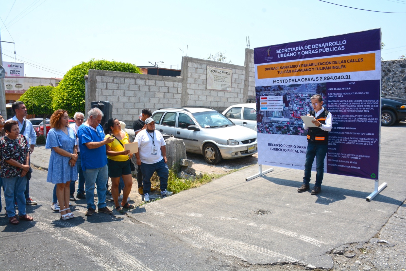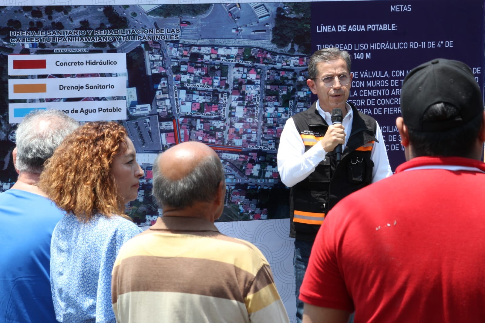 Vecinos de la colonia Tulipanes de la Delegación Ciudad Chapultepec de Cuernavaca, fueron informados sobre los trabajos que se llevarán a cabo a partir del próximo lunes 06 de mayo y durante un periodo estimado de 45 días naturales en las calles Tulipán Hawaiano y Tulipán Inglés que consta en la sustitución del drenaje sanitario, una nueva línea de agua potable y la rehabilitación del asfalto, dando respuesta a una petición hecha por la ciudadanía a través del Consejo de Participación Social de la colonia.