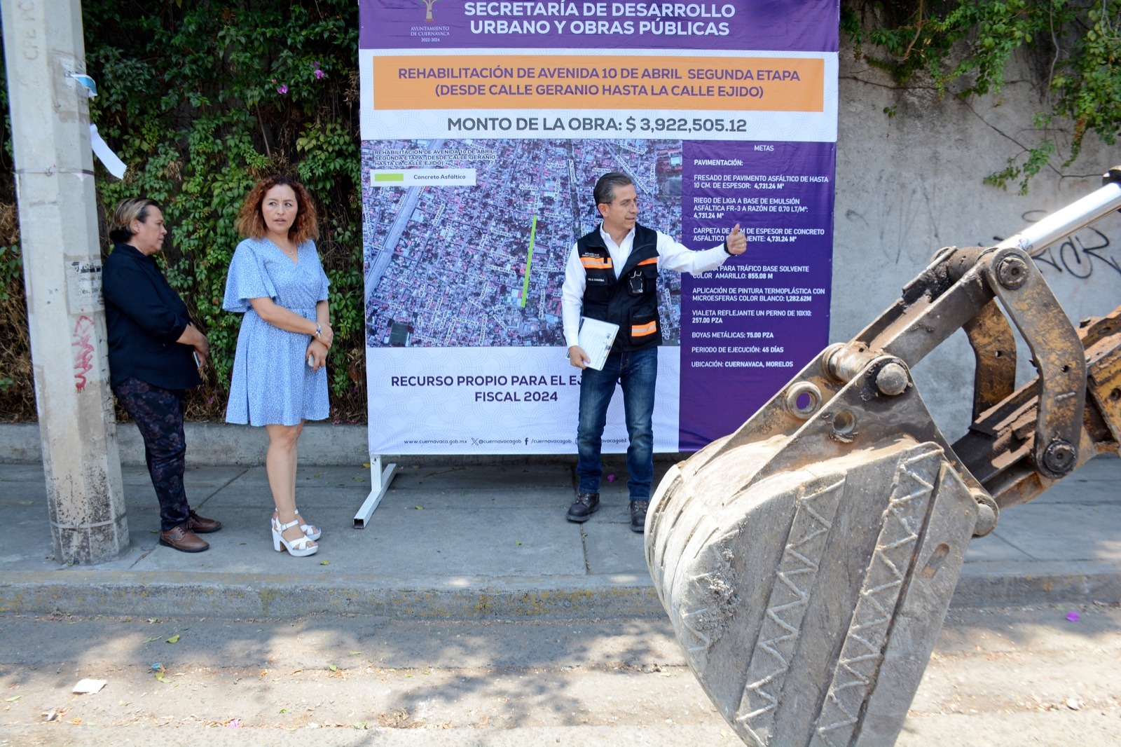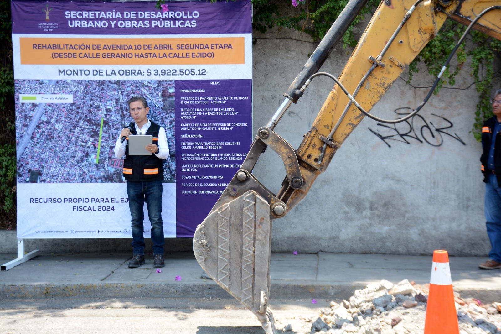 Al dar la explicación técnica a los colonos, el secretario de Desarrollo Urbano y Obras Públicas del Ayuntamiento de Cuernavaca, Demetrio Chavira de la Torre, detalló que se llevará a cabo el fresado en todo el pavimento asfáltico fatigado por el paso del tiempo de hasta 10 centímetros de espesor en cuatro mil 731.24 metros cuadrados, el riego de liga a base de emulsión asfáltica FR- 3 a razón de 0.70 litros por metro cuadrado para finalmente tender una carpeta de cinco centímetros de espesor de concreto asfáltico en caliente en cuatro mil 731.24 metros cuadrados.