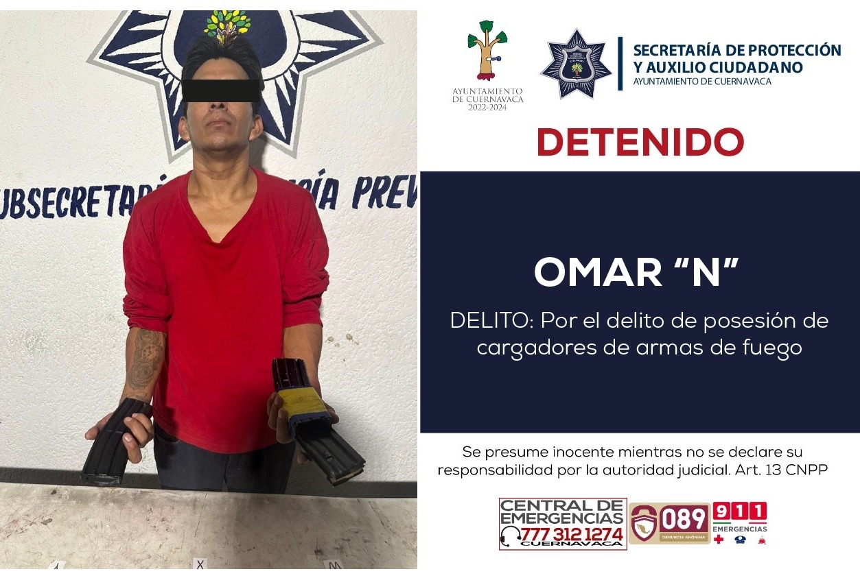 Resultado de la implementación de acciones operativas y de reportes hechos por la ciudadanía, la Secretaría de Protección y Auxilio Ciudadano (SEPRAC) de Cuernavaca logró en las últimas horas la detención de cuatro hombres considerados probables generadores de violencia, uno de ellos incluso podría ser el líder de algún grupo delictivo, asegurando también cargadores abastecidos con diversos cartuchos de arma larga y vehículos.