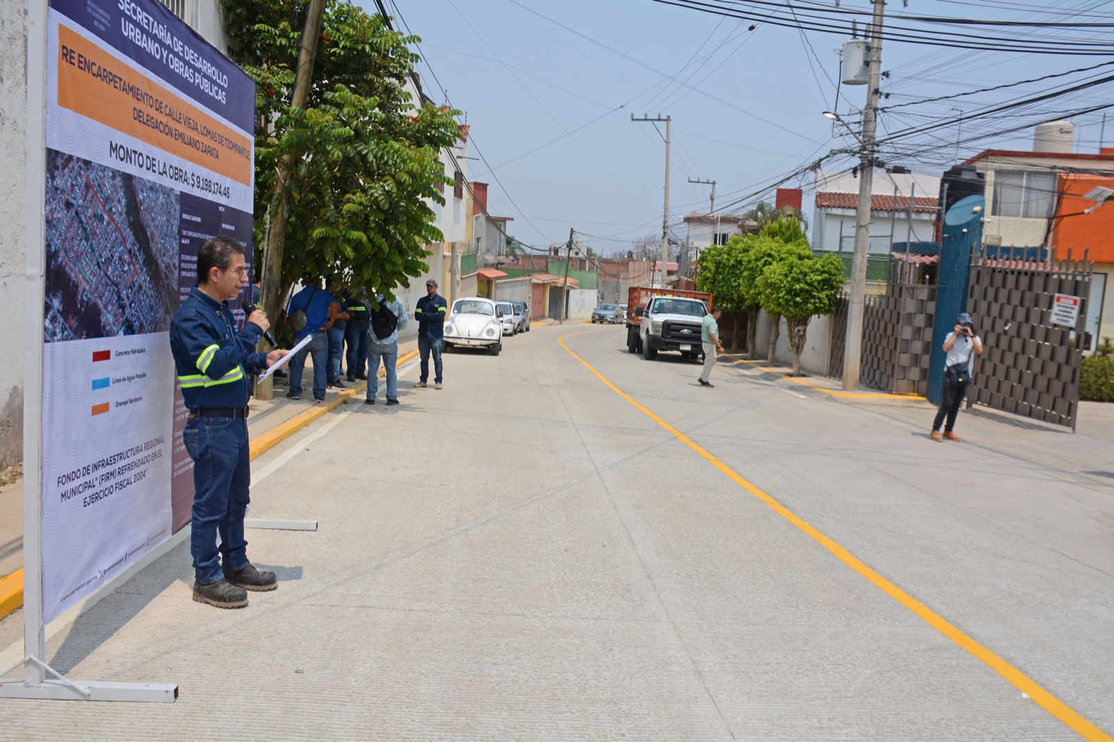 En presencia de vecinos de la colonia Lomas de Tzompantle se llevó a cabo la entrega de la repavimentación con concreto hidráulico de la parte norte de calle Vieja que por años estuvo abandonada y la cual contempló la reparación de la línea de agua potable y nivelación de pozos de visita, entregando con ello una obra integral que garantiza su larga vida útil.