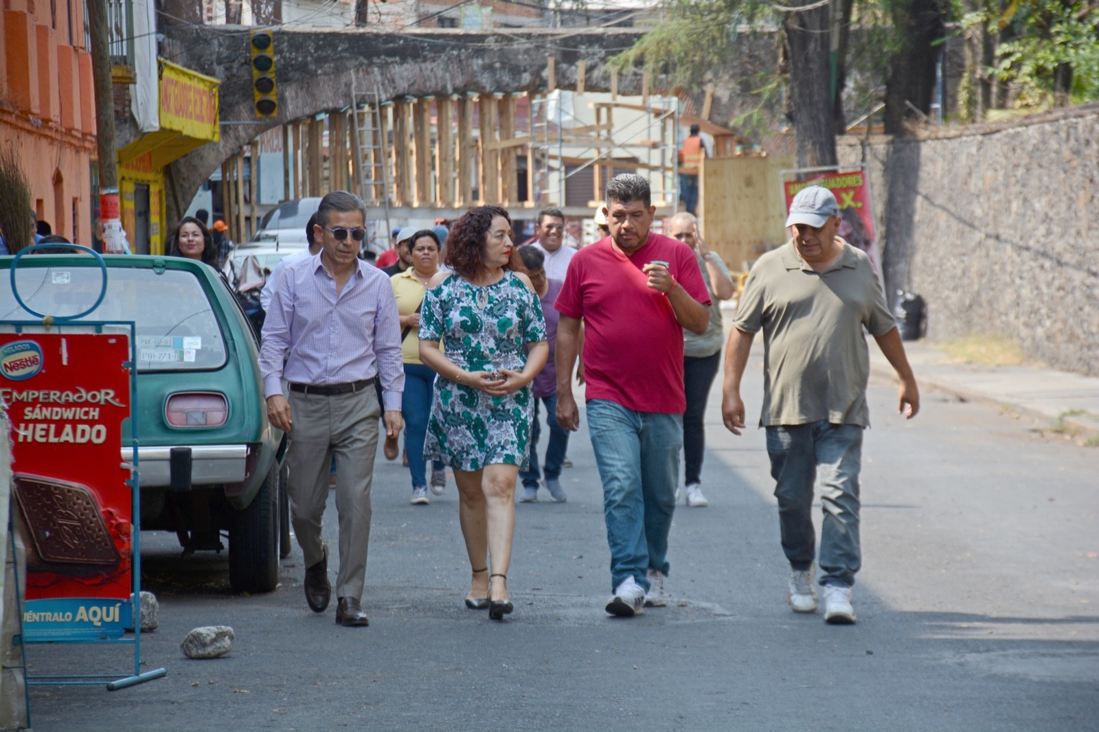Uno de los principales objetivos de esta supervisión, fue informar a las y los vecinos por parte de titulares de la empresa encargada de la obra y certificada por el INAH, en qué consisten los trabajos en el arco del acueducto que está siendo intervenido sobre calle Carlos Cuaglia en el barrio de Gualupita, misma que se encuentra cerrada al paso vehicular y peatonal por el apuntalamiento y la consolidación de la estructura que data del Siglo XVIII.