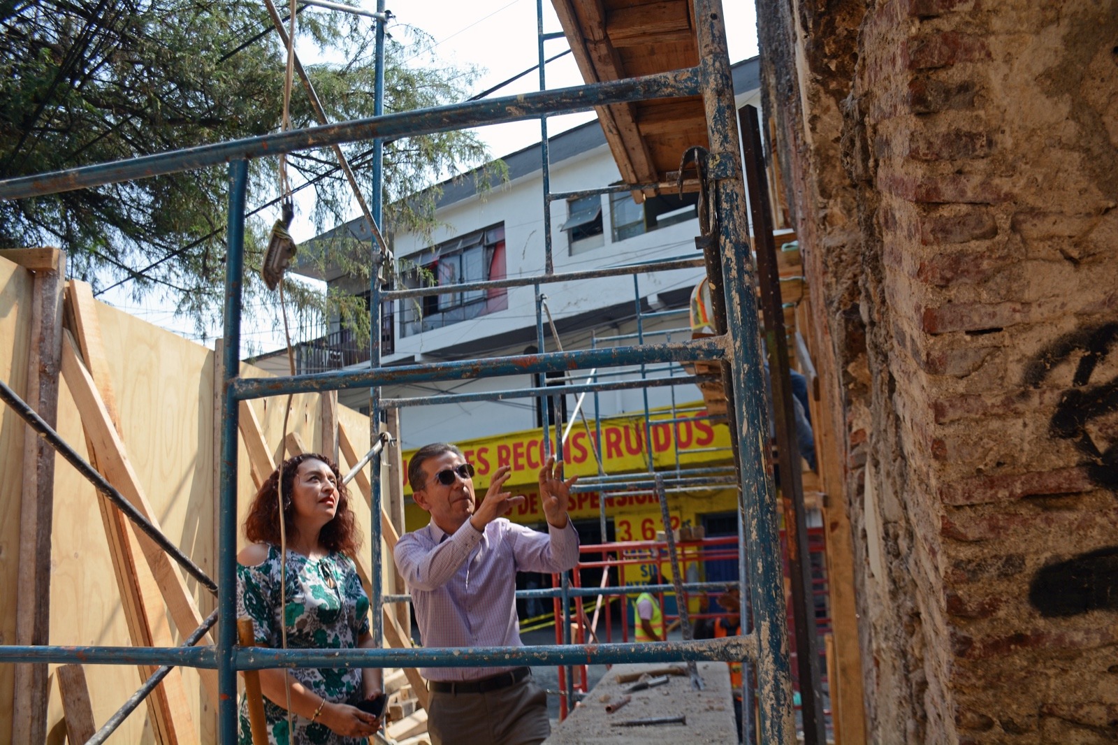 • La síndica municipal en funciones de presidenta municipal Verónica Atenco y el secretario de Desarrollo Urbano informaron de las tareas que realiza personal especializado supervisado por el INAH en la estructura dañada