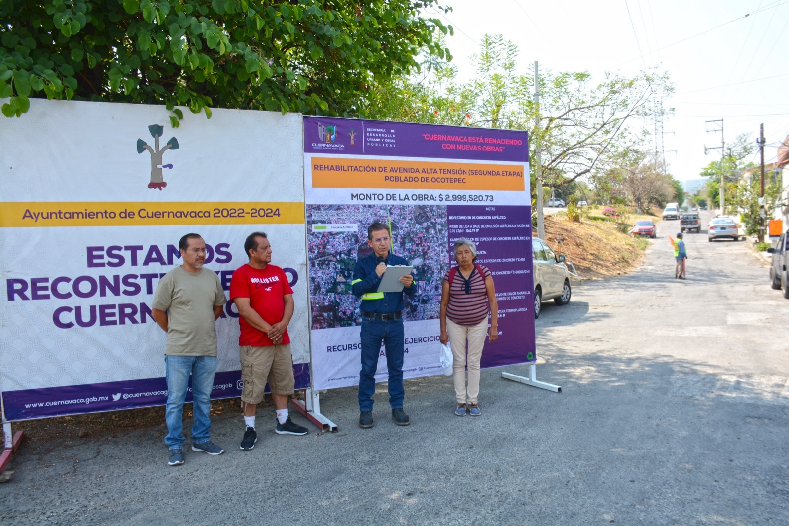 El Ayuntamiento de Cuernavaca destina dos millones 999 mil 520.73 pesos proveniente de recursos propios municipales para la obra correspondiente a la segunda etapa de rehabilitación de la avenida Alta Tensión en el poblado de Ocotepec, con lo que se busca continuar mejorando la superficie de rodamiento de vialidades principales en la ciudad.