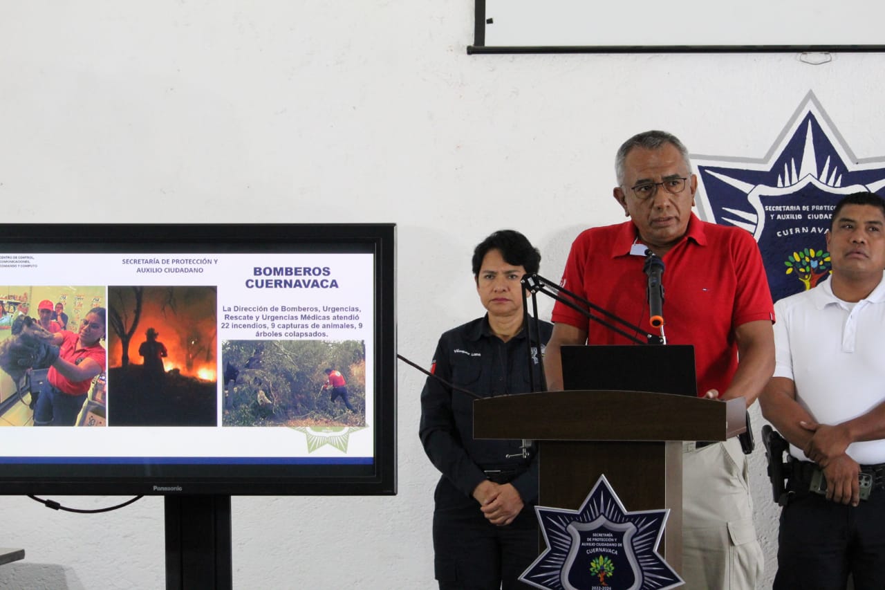 La Dirección de Bomberos, Urgencias, Rescate y Urgencias Médicas adscrita a la Secretaría de Protección y Auxilio Ciudadano (SEPRAC) de Cuernavaca atendió del 27 de mayo al 02 de junio un total de 22 incendios, nueve capturas de animales y nueve árboles colapsados.