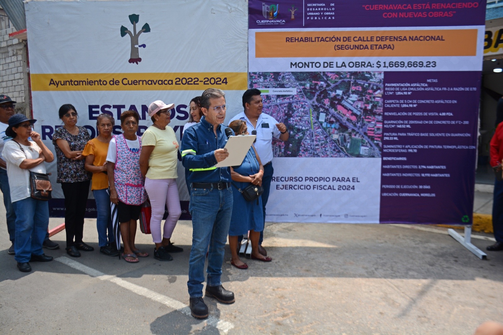 Con una inversión de un millón 669 mil 669.23 pesos proveniente de recursos propios municipales, el Ayuntamiento de Cuernavaca entregó este martes la segunda etapa de rehabilitación de la avenida Defensa Nacional en el poblado de Chamilpa que beneficiará a tres mil 794 habitantes directos y más de 18 mil usuarios indirectos, al ser uno de los principales accesos al campus Chamilpa de la Universidad Autónoma del Estado de Morelos (UAEM).
