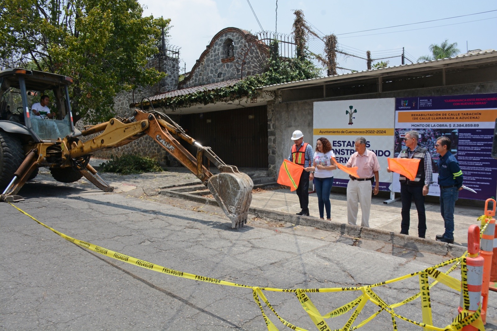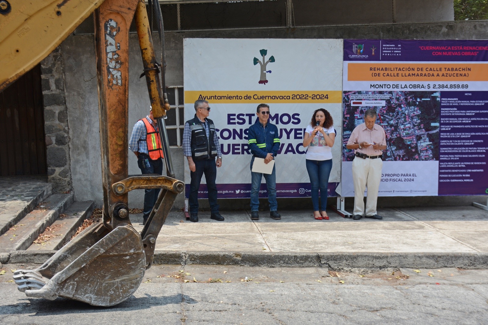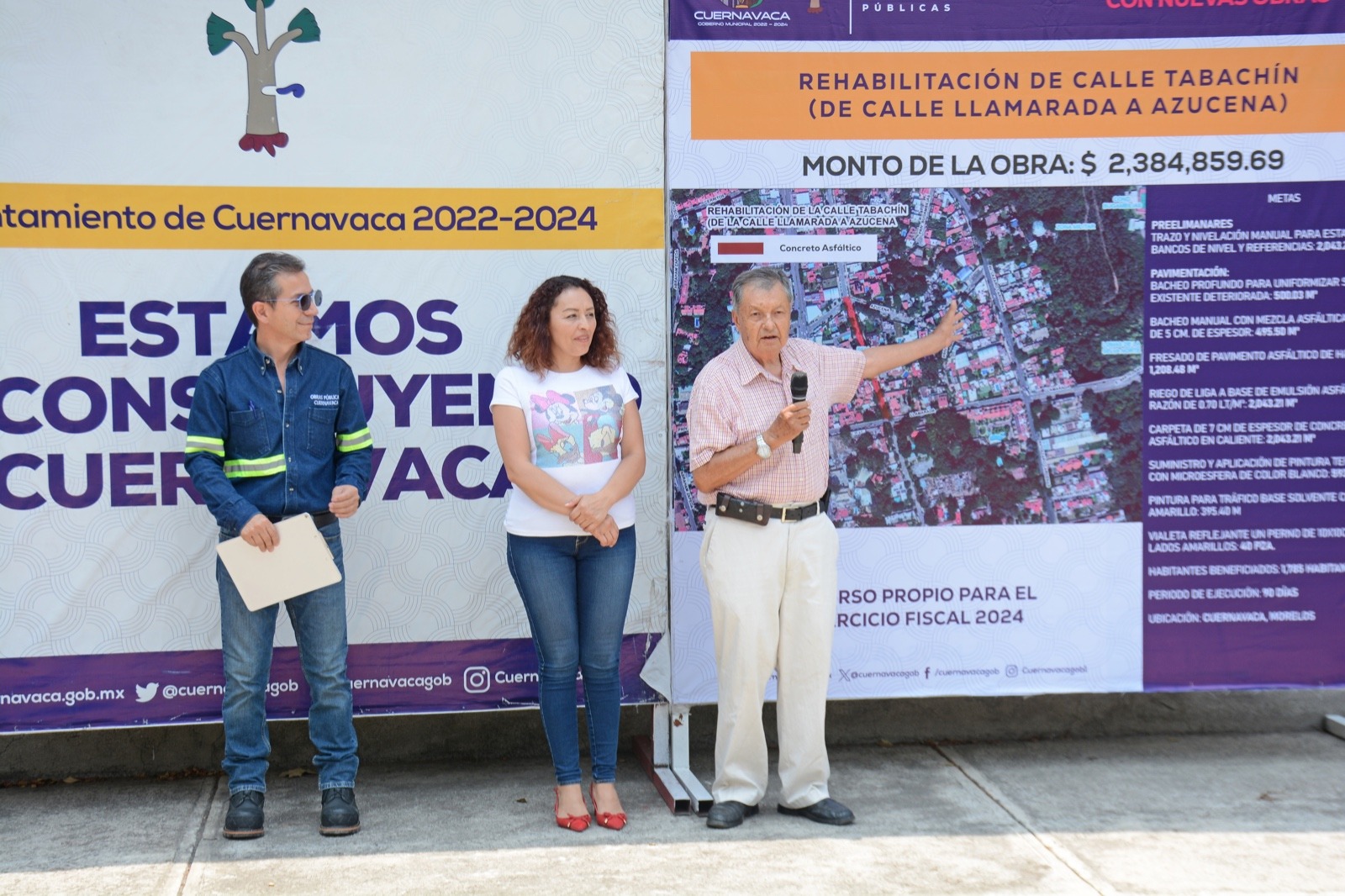 Con un monto de inversión de dos millones 384 mil 859.69 pesos proveniente de recursos propios municipales, el Ayuntamiento de Cuernavaca puso en marcha los trabajos que durante un periodo estimado 90 días, permitirán contar con la rehabilitación de la calle Tabachín (de calles Llamarada a Azucena) en la colonia Bellavista, motivo por lo que solo se permitirá el paso al tránsito local de los vecinos que habitan en este tramo.