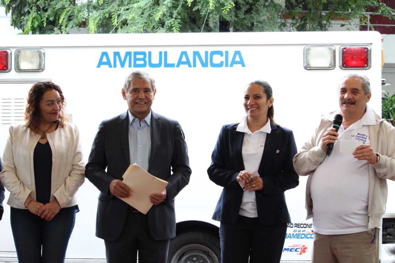 Por su lado, el presidente saliente del Club Rotario Cuauhnáhuac, Fernando Streber Montange, manifestó su orgullo de cristalizar esta entrega que plantearon desde el año pasado, confiando en que servirá para cumplir la función de apoyo a la comunidad a través de una ambulancia equipada con carro camilla, cuerno y bastón; con rótulos establecidos por la norma, sirena, radio y las luces generales.