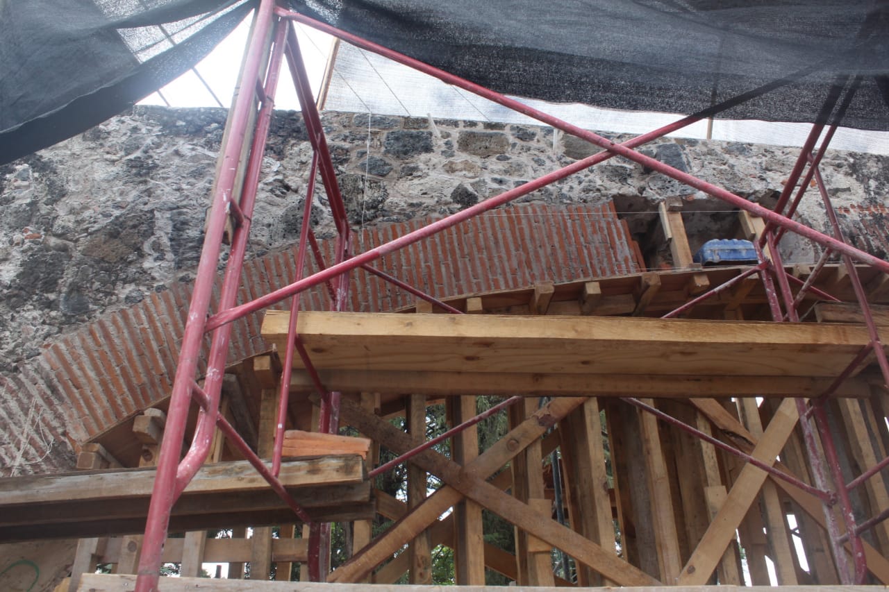 Cabe resaltar que entre los trabajos efectuados destacan el apuntalamiento con andamios de carga que evitaron un posible colapso, el diseño de la cercha en piso como parte de la consolidación de la estructura y el retiro de todo el material suelto derivado de los impactos que ha padecido a lo largo del tiempo para volverlo a coser piedra por piedra.