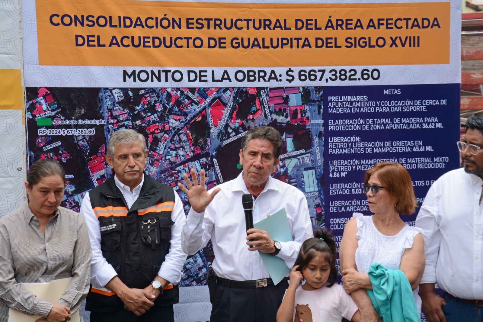 En presencia de vecinos que atestiguaron este importante evento, José Luis Urióstegui, subrayó la importancia que representa la obra, no solo por brindarle el soporte suficiente a la superficie intervenida en el arco mayor del acueducto para evitar que colapse, sino también al colocar dos arcos metálicos en las calles de Carlos Cuaglia y De los Arcos que conectan al acueducto para restringir el paso de vehículos de mayor altura y preservar esta estructura que data del Siglo XVIII a futuras generaciones.