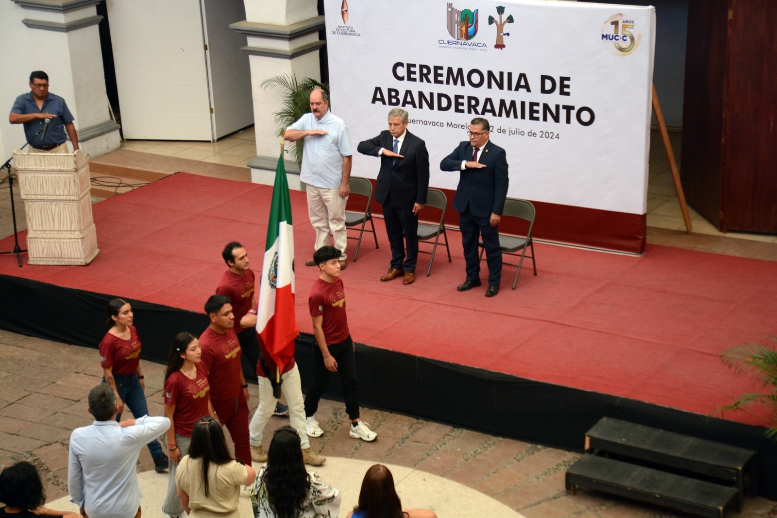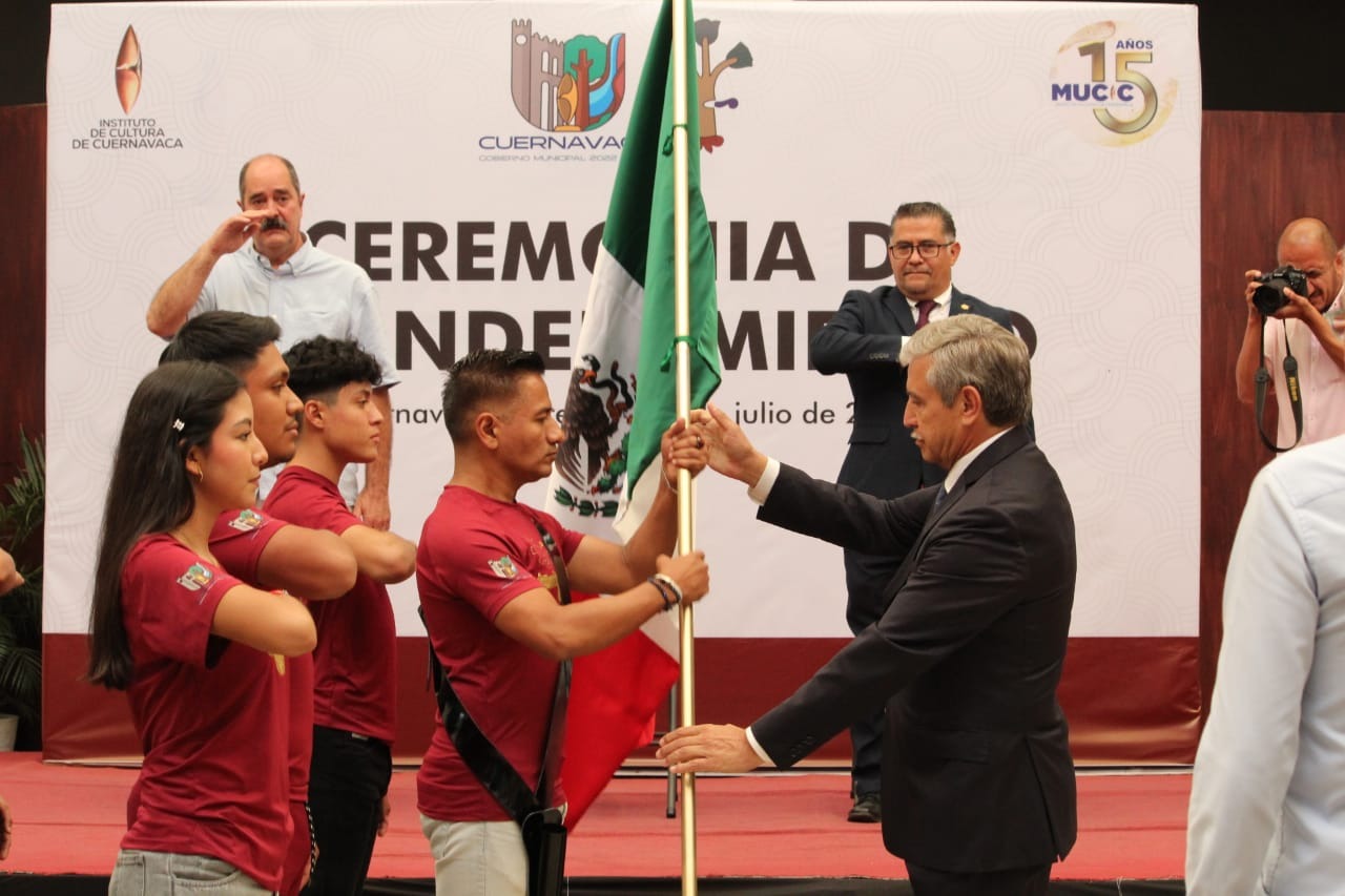 Al encabezar la ceremonia de abanderamiento que se llevó a cabo en el Museo de la Ciudad de Cuernavaca (MuCiC), el alcalde José Luis Urióstegui manifestó el orgullo que representan para la capital morelense, estando seguro de que este intercambio podrá fortalecer la fraternidad que se tiene con Colombia y que servirá para que lleguen nuevamente a México más integrantes de esta comunidad.