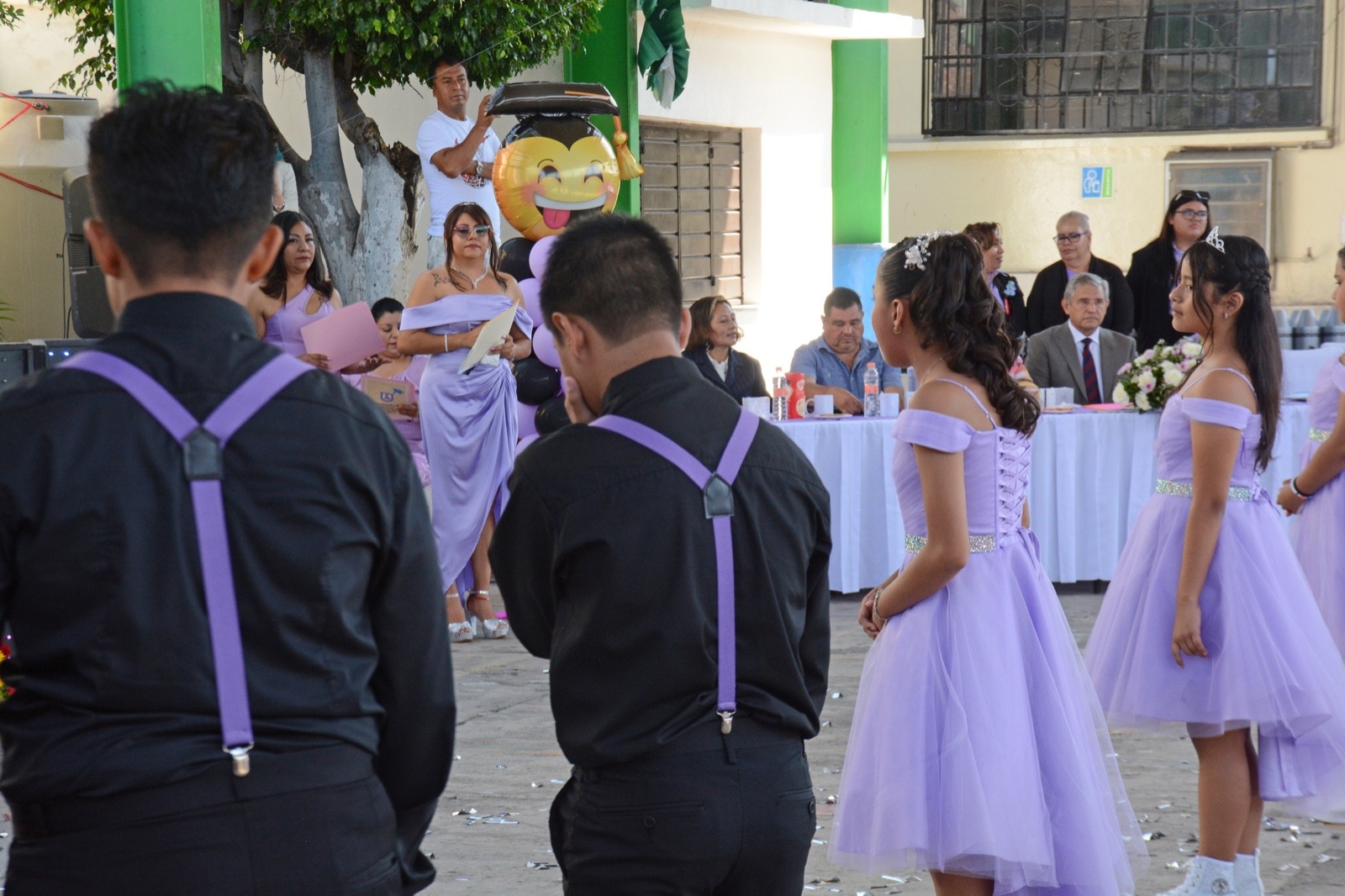 A la ceremonia asistieron también el presidente del Comité de Padres de Familia, Ranulfo Millán Pineda; la presidenta de Obras en la escuela, Brenda Bellomo Xomo y las maestras titulares de los grupos de 6 A, Laura Cruz Velázquez y de 6 B Monserrat Ruiz Rodríguez.