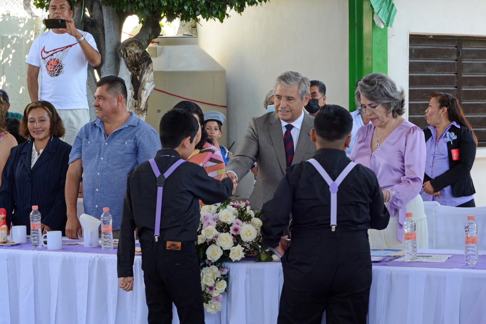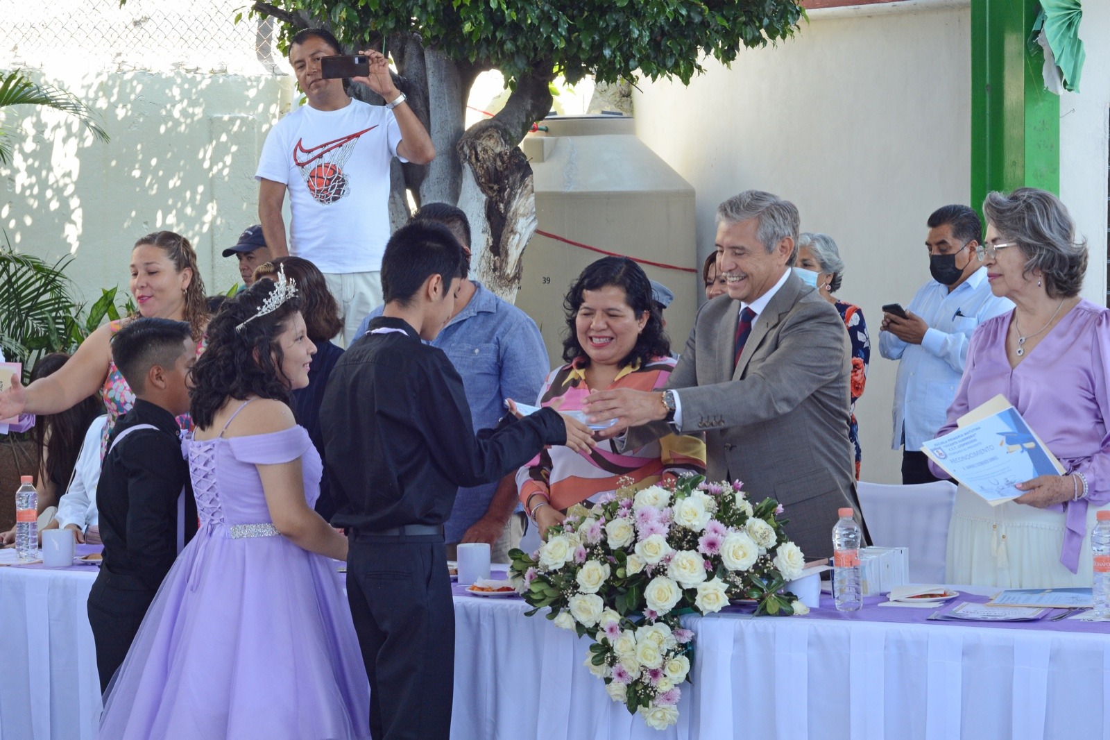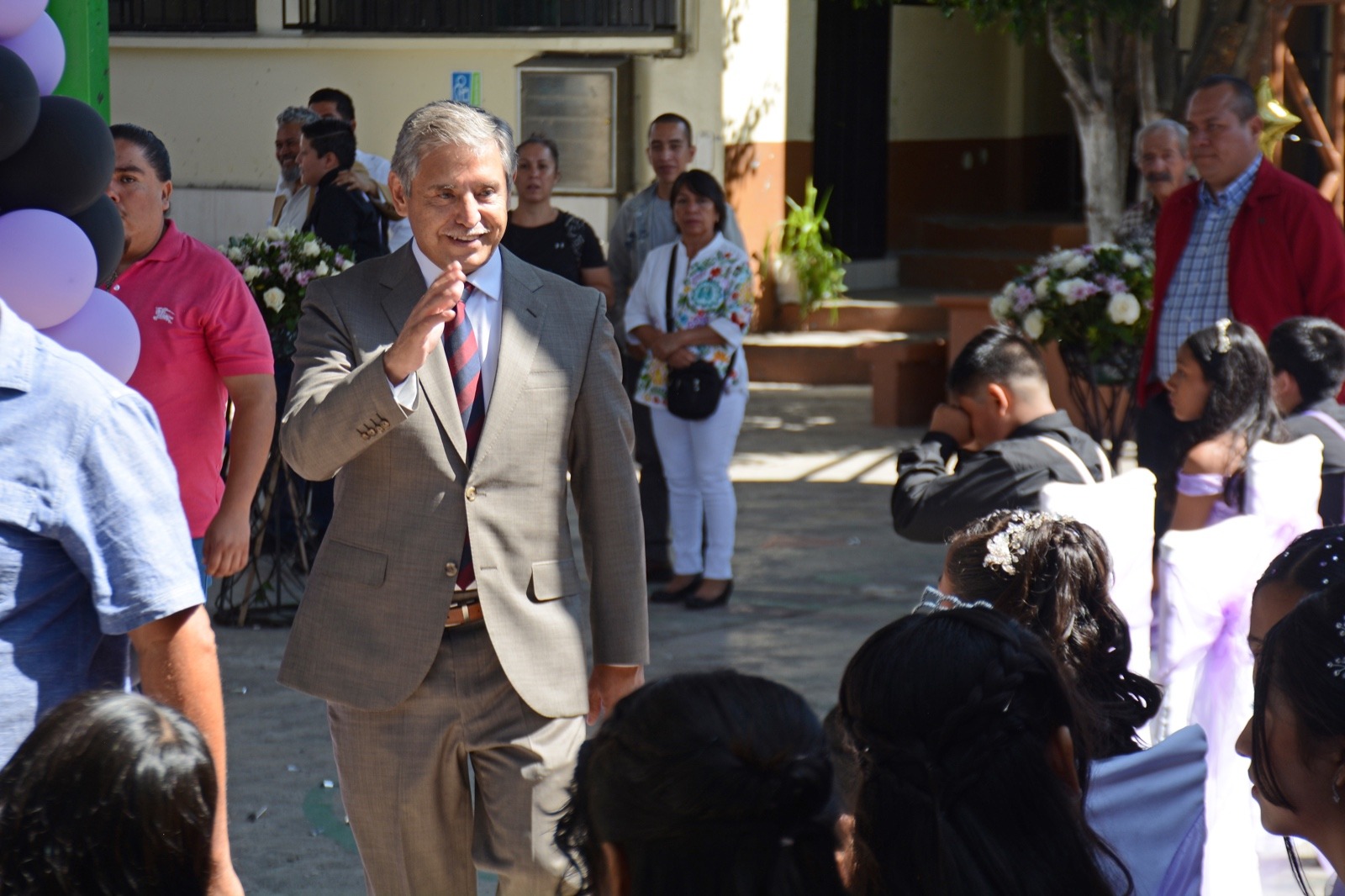 Agradeció a las madres y padres de familia, autoridades educativas encabezadas por la directora del plantel, Soledad Villalobos Soto, pero sobre todo a las y los estudiantes por permitirle el honor de apadrinarlos, con quienes está seguro que mantendrá contacto y le dará mucho gusto saber que son niñas y niños de éxito porque hoy se están preparando para terminar una de muchas metas que se van a plantear a lo largo de su vida.