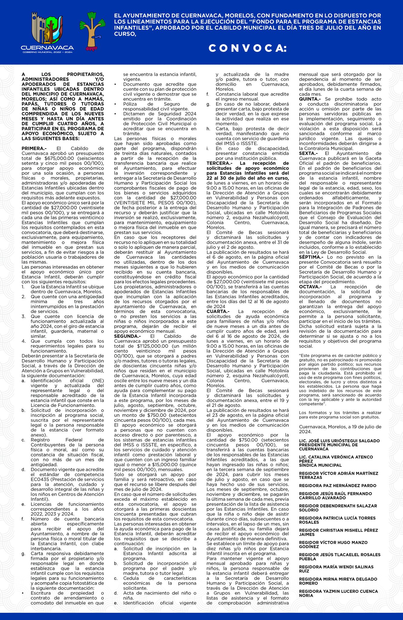 La convocatoria y lineamientos del programa podrán consultarse en la página oficial https://cuernavaca.gob.mx/ y en las redes sociales del Municipio de Cuernavaca.