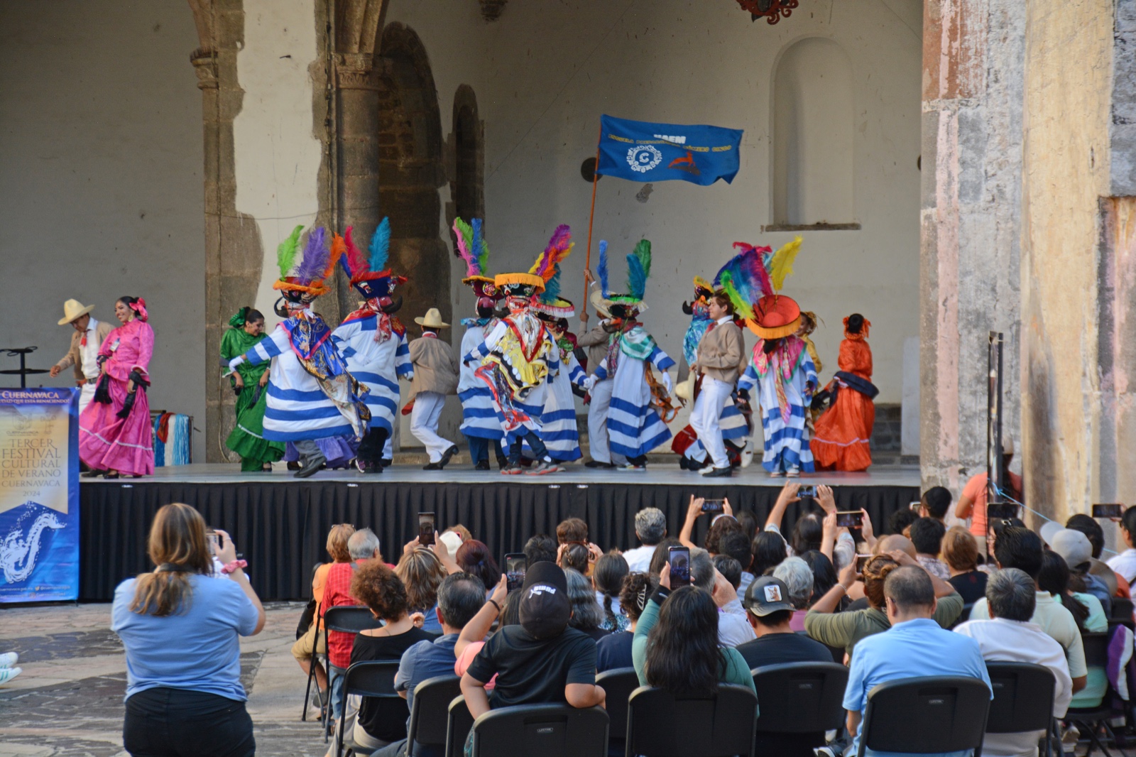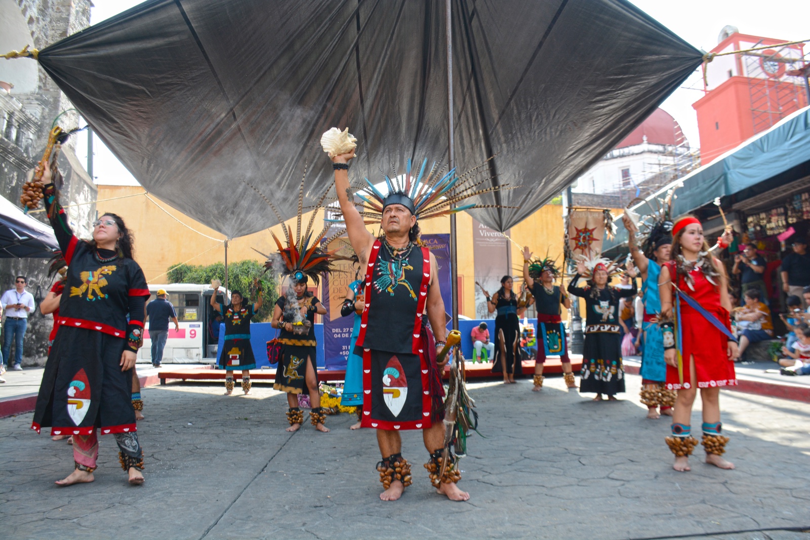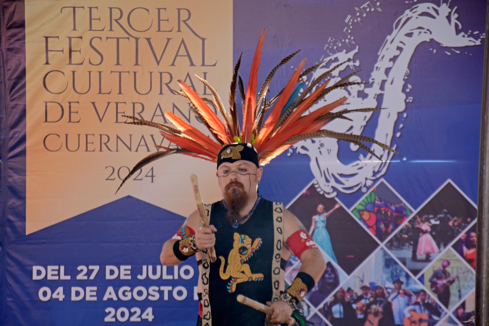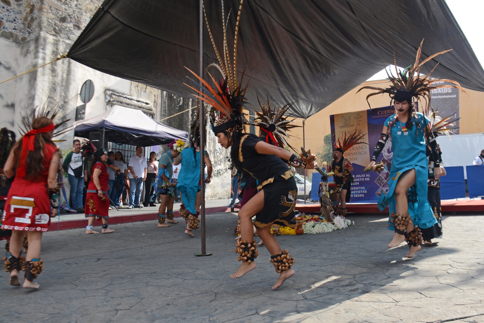 Teniendo como escenario el primer cuadro de la ciudad y con un ceremonial para saludar a los cuatro puntos cardinales a cargo del grupo de danzantes prehispánicos “Tlahuicayotl”, en representación del alcalde, la secretaria de Desarrollo Humano y Participación Social, Laura Hernández, acompañada del director general del Instituto de Cultura de Cuernavaca, Juan Contreras de Oteyza, dio por inaugurado el festival que contempla disciplinas artísticas desde teatro hasta danza, música (rock, ska, jazz y música popular), noche de museos y un show de drones y pirotecnia.