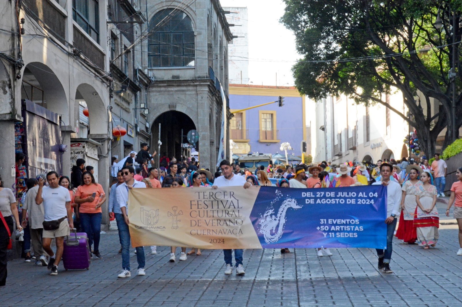 En medio de una gran verbena, el Festival Cultural y de Verano Cuernavaca 2024 abrió sus puertas con el desfile internacional “Danzando en la Eterna Primavera” a cargo de la compañía de danza folclórica mexicana “Xochiquetzalli” del estado de Morelos recorriendo las principales calles del Centro de la ciudad, con la participación de contingentes artísticos de Colombia, Perú y de seis estados de la República como Chihuahua, Hidalgo, Quintana Roo, Veracruz, Guerrero, Yucatán y Morelos que calumniaron con una presentación exitosa en la capilla abierto de Catedral.
