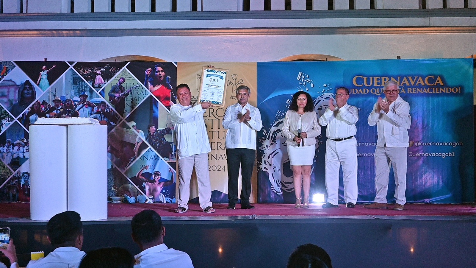 José Luis Urióstegui hizo entrega de un reconocimiento al maestro Abraham Martínez Huerta por sus 50 años de enseñanza en esta disciplina artística que representa las raíces, la cultura y la forma de expresión de los pueblos originarios en Cuernavaca, ciudad con raíces profundas en la vida de estas comunidades, reconocimiento al que se sumó el estado de Chihuahua por el XVI aniversario del Ballet Xochiquetzalli de Morelos.