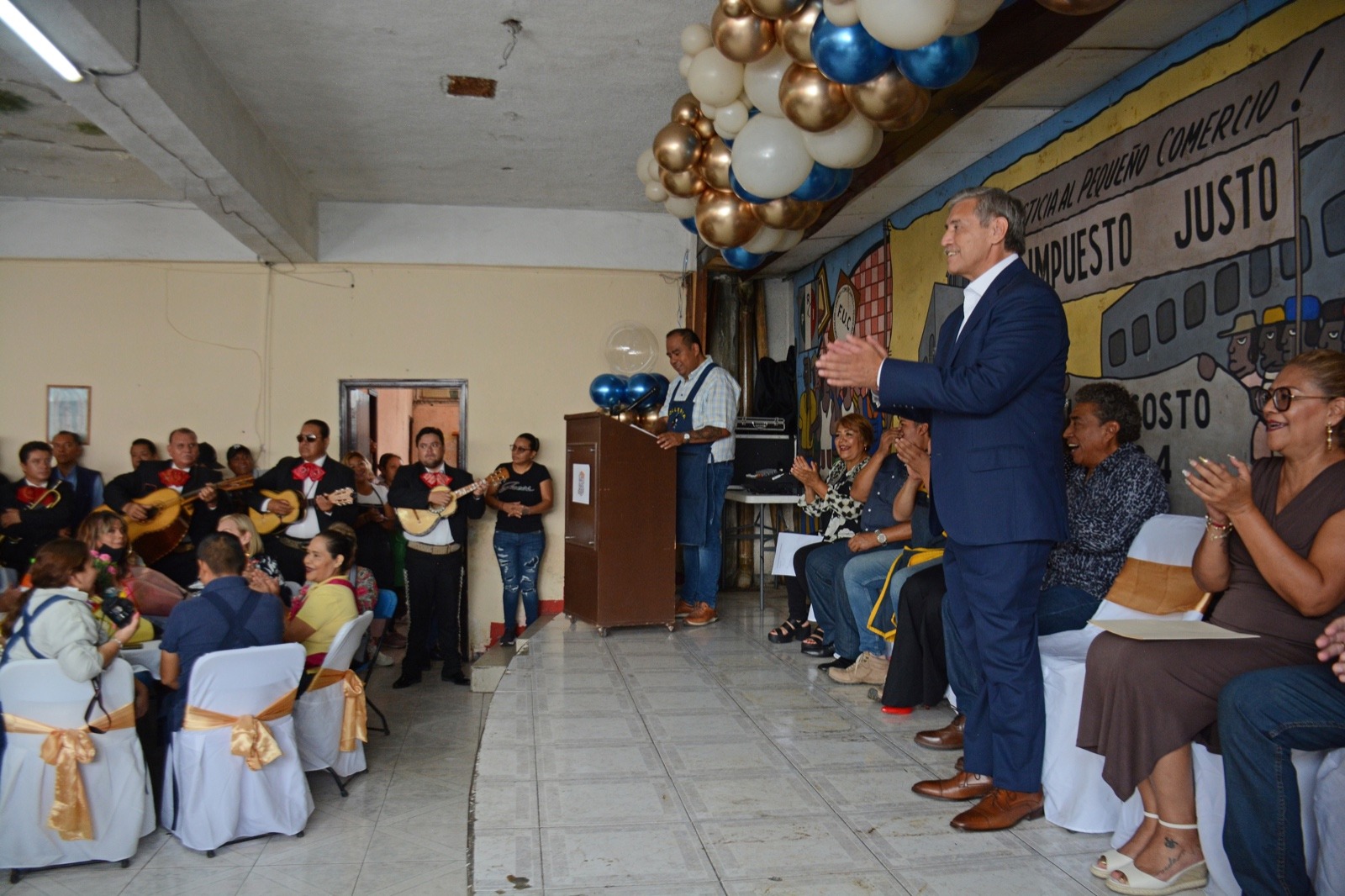 Acompañado de Sara Bello Olmedo, directora del Centro Comercial Adolfo López Mateos y del secretario de Desarrollo Económico y Turismo, Humberto Paladino Valdovinos, el alcalde capitalino agradeció la invitación de los dirigentes agrupados en la Unión de Comerciantes, con quienes se comprometió a rehabilitar tal y como ocurrió con la cisterna contra incendios, su auditorio partiendo de la impermeabilización hasta el retiro los plafones dañados y la creación con artistas urbanos de un mural alusivo al comercio que le dé una imagen más digna a este espacio de convivencia.