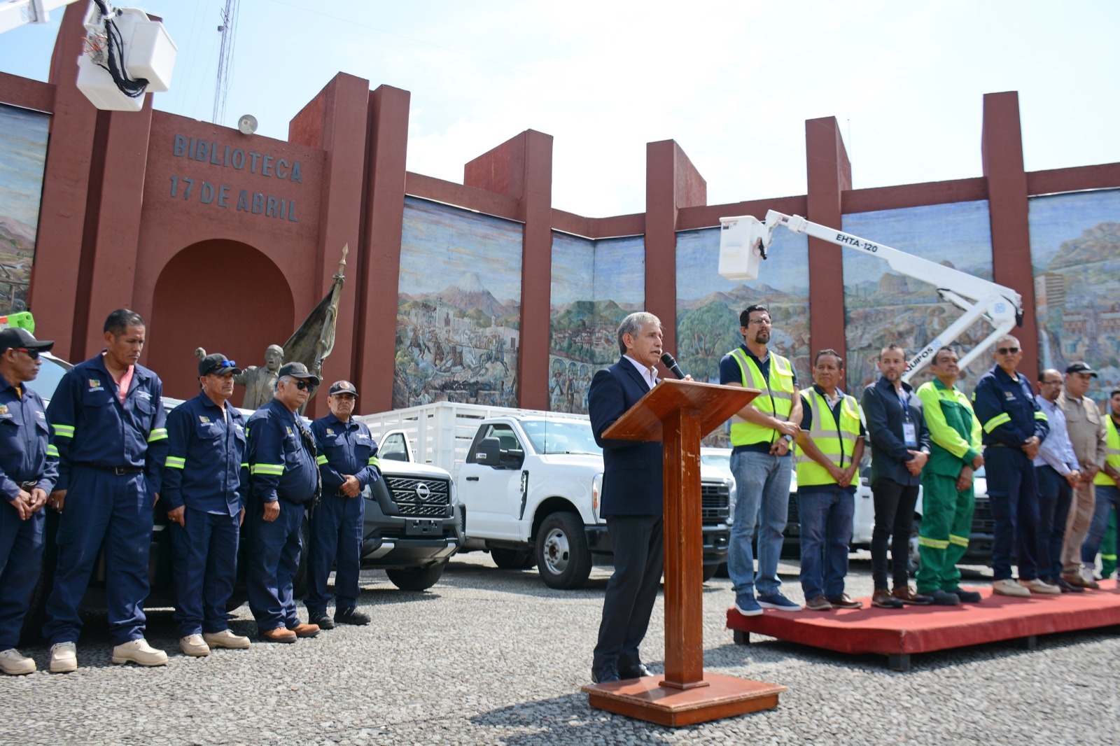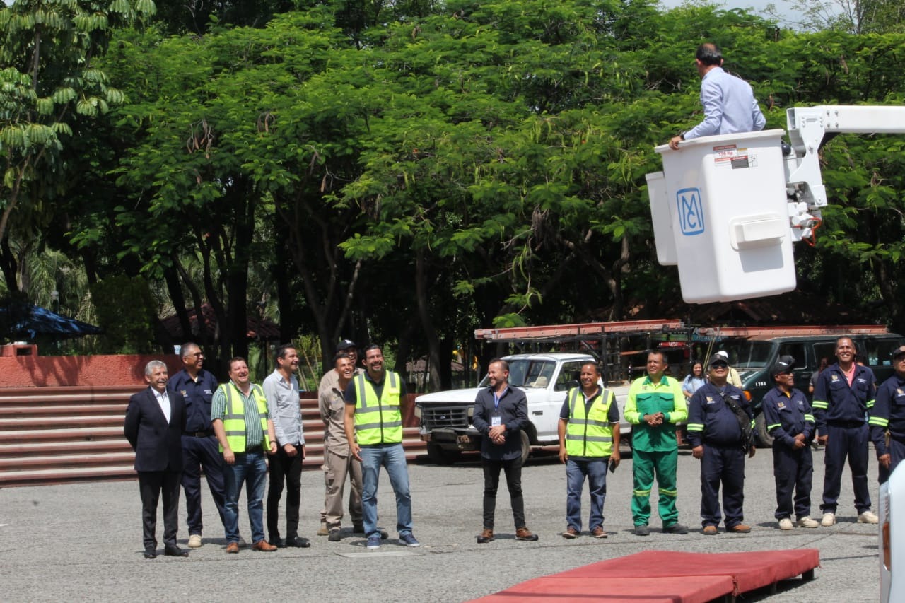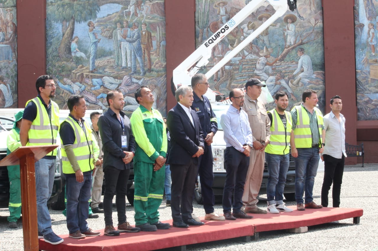 • El presidente municipal encabezó la entrega de dos grúas y tres camionetas que agilizarán el trabajo diario de las áreas de Alumbrado Público, Parques y Jardines, Aseo Urbano y la Brigada de Acción Inmediata (SAI)