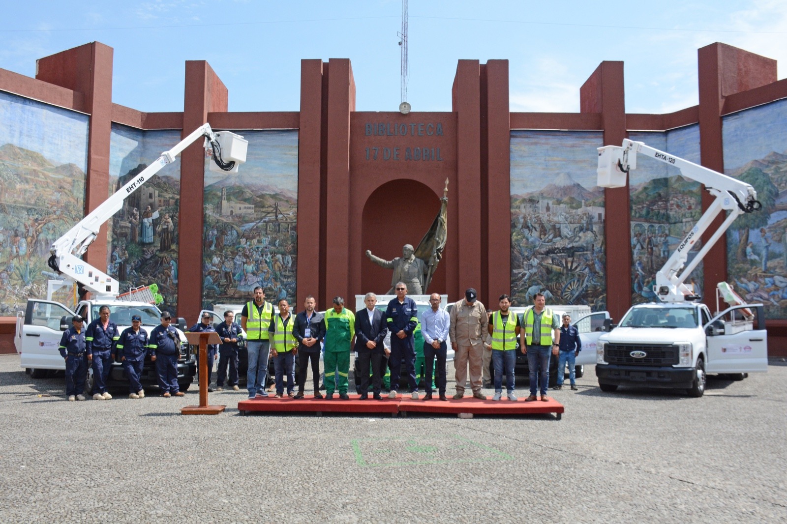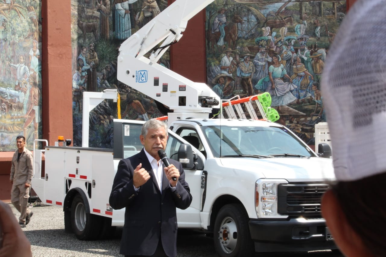 Detalló que las dos grúas, una telescópica de 11 metros y una articulada de 13 metros serán para el área de Alumbrado Público, la camioneta de tres y media para Parques y Jardines, y las dos camionetas tipo estaquitas para la brigada SAI y Aseo Urbano, lo que representa un desahogo para las labores que realizan diariamente y seguridad para los trabajadores.