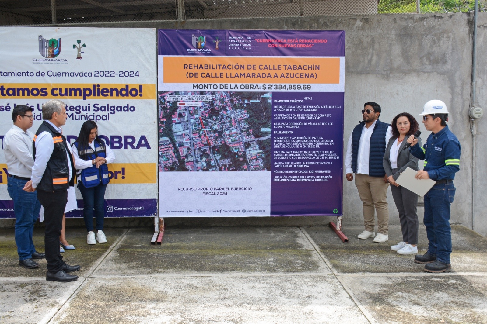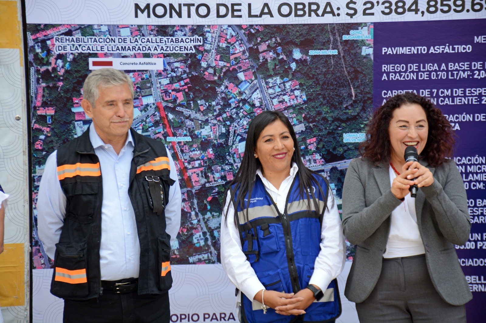 Previamente, el secretario de Desarrollo Urbano y Obras Públicas del Ayuntamiento de Cuernavaca, Demetrio Chavira de la Torre, señaló que para rehabilitar el pavimento fracturado hicieron un riego de liga a base de emulsión asfáltica RF-3 a razón de 0.70 lt/m2 en dos mil 049.43 metros cuadrados, colocaron una carpeta de siete centímetros de espesor de concreto asfáltico en caliente en dos mil 049.43 metros cuadrados e hicieron la renivelación de una caja para operación de válvulas tipo 1 de 0.70×0.70 metros lineales, así como el balizamiento que incluyó 55 vialetas reflejantes un perno de 10×10 centímetros.