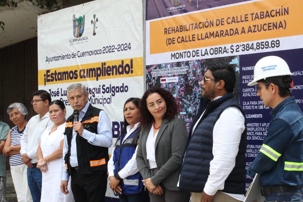 El presidente municipal de Cuernavaca, José Luis Urióstegui Salgado, sigue entregando obras que no solo mejoran la imagen de la ciudad, sino que también abonan a mejorar la calidad de vida de la población, como fue el caso de la rehabilitación con concreto asfáltico de la calle Tabachín en la colonia Bellavista, para la cual se invirtieron recursos propios municipales que ascendieron a dos millones 384 mil 859.69 pesos, beneficiando de manera directa a más de mil 300 habitantes.