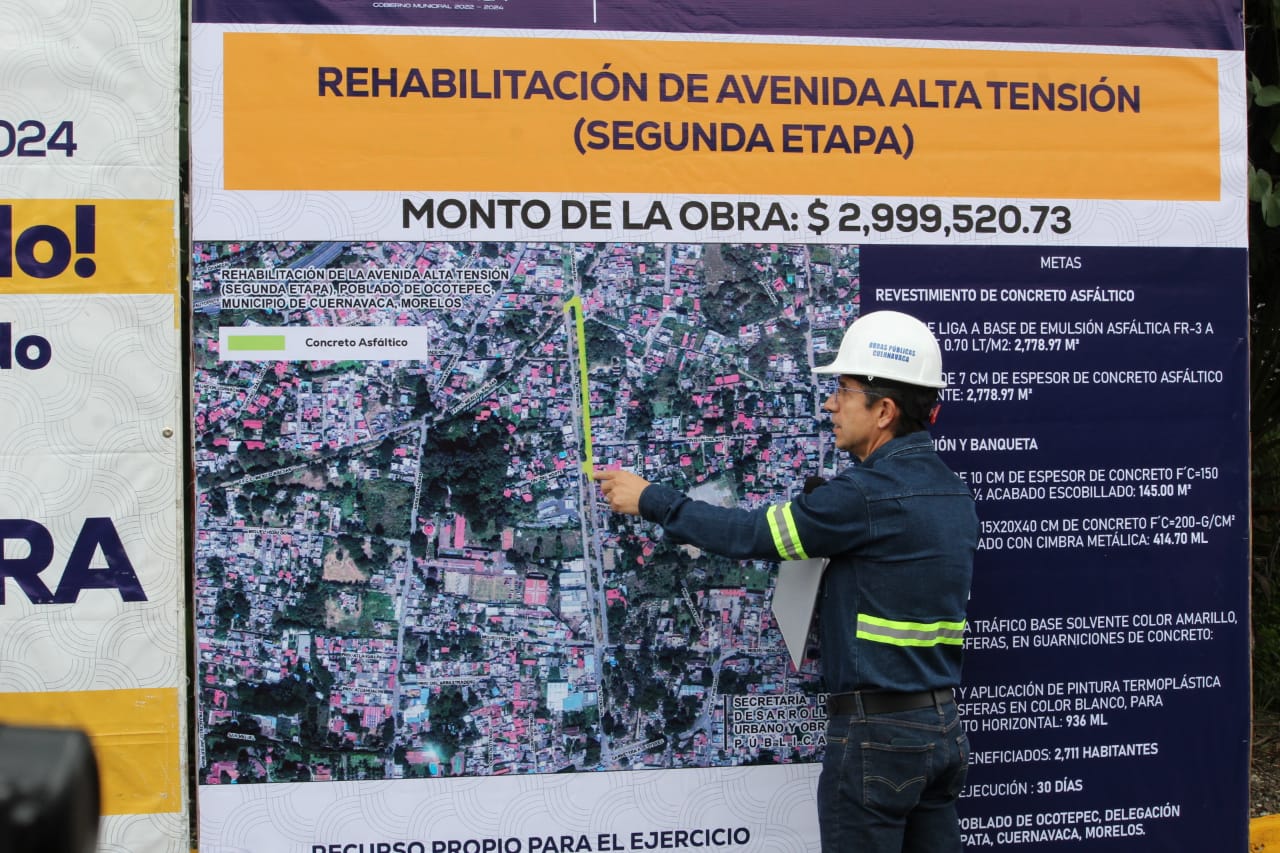 El presidente municipal de Cuernavaca, José Luis Urióstegui Salgado, encabezó este miércoles la inauguración de la obra de rehabilitación con concreto asfáltico de la segunda etapa de la avenida Alta Tensión en el poblado de Ocotepec que tuvo un monto de inversión de dos millones 999 mil 520.73 pesos proveniente del fondo de recursos propios municipales que beneficiará de manera directa a más de dos mil habitantes.