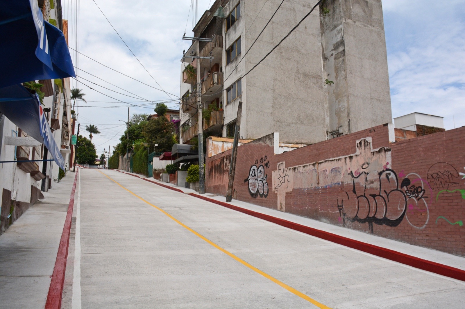 • En esta calle que comunica a Leyva con Boulevard Juárez frente a la Clínica No. 20 del IMSS el alcalde José Luis Urióstegui resaltó el compromiso de seguir reconstruyendo vialidades abandonadas por años