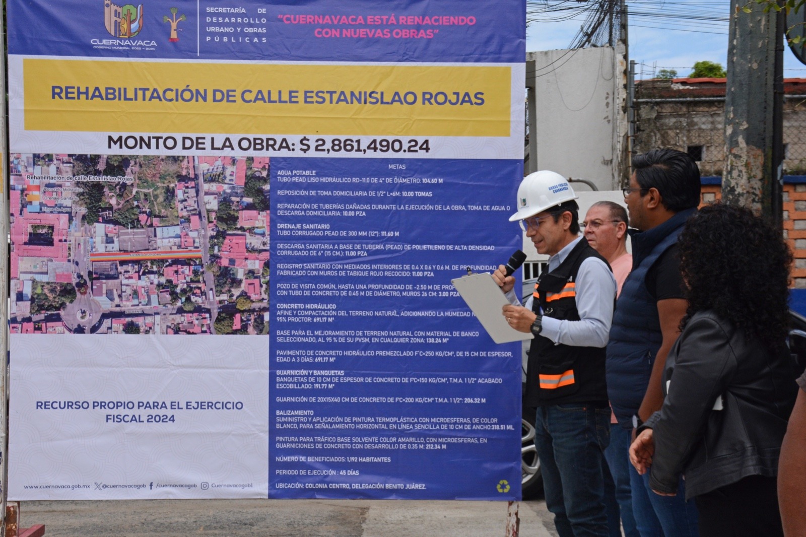 El Ayuntamiento de Cuernavaca sigue entregando obras integrales que mejoran la calidad de vida de la población ofreciendo servicios públicos con mayor calidad, como es la intervención hecha a la calle Estanislao Rojas en el primer cuadro de la ciudad que con una inversión de dos millones 861 mil 490.24 pesos del fondo de recursos propios municipales contempló la rehabilitación de la línea de agua potable, del drenaje sanitario y del pavimento con concreto hidráulico.