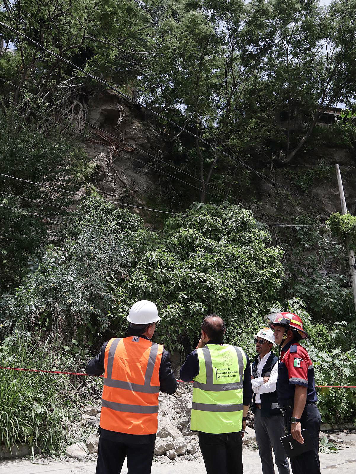 Tras recibir un reporte al Centro de Control, Comando, Comunicaciones y Cómputo (C4) de Cuernavaca sobre la caída de materiales del talud en la calle Bugambilias de la colonia Los Pilares, distintas áreas operativas del Ayuntamiento de Cuernavaca se hicieron presentes a la brevedad en el lugar para implementar los protocolos de inspección y prevención de riesgos en las viviendas de la zona, privilegiando la seguridad de los vecinos.