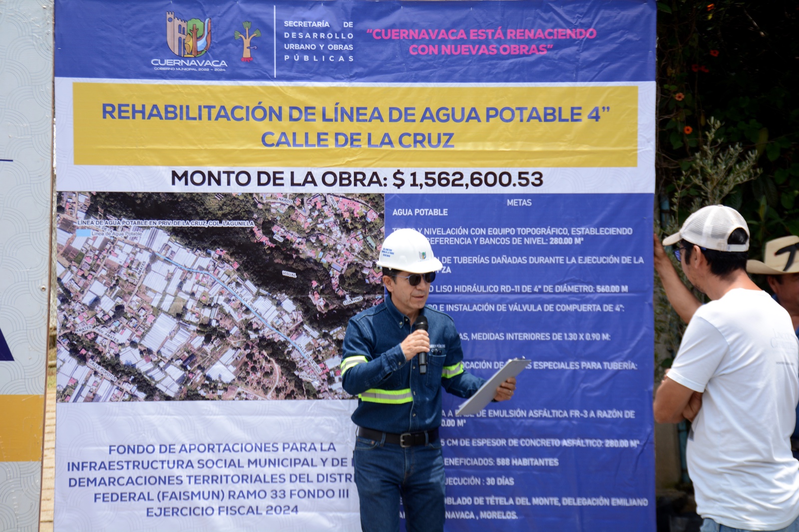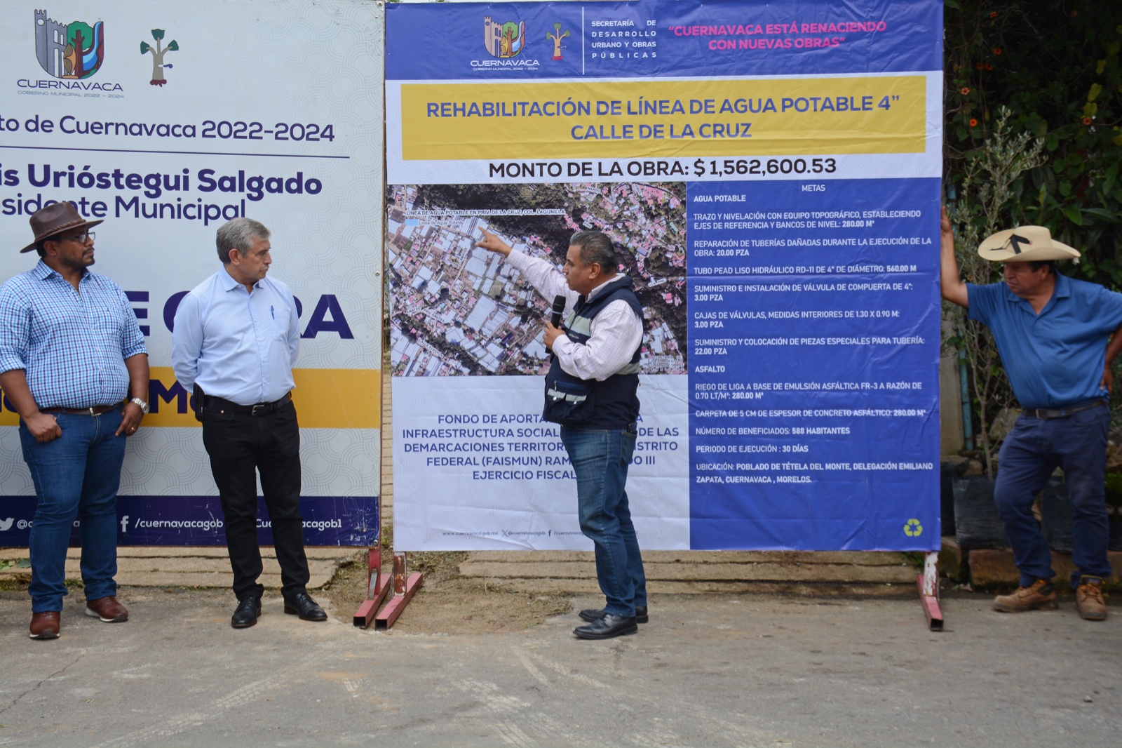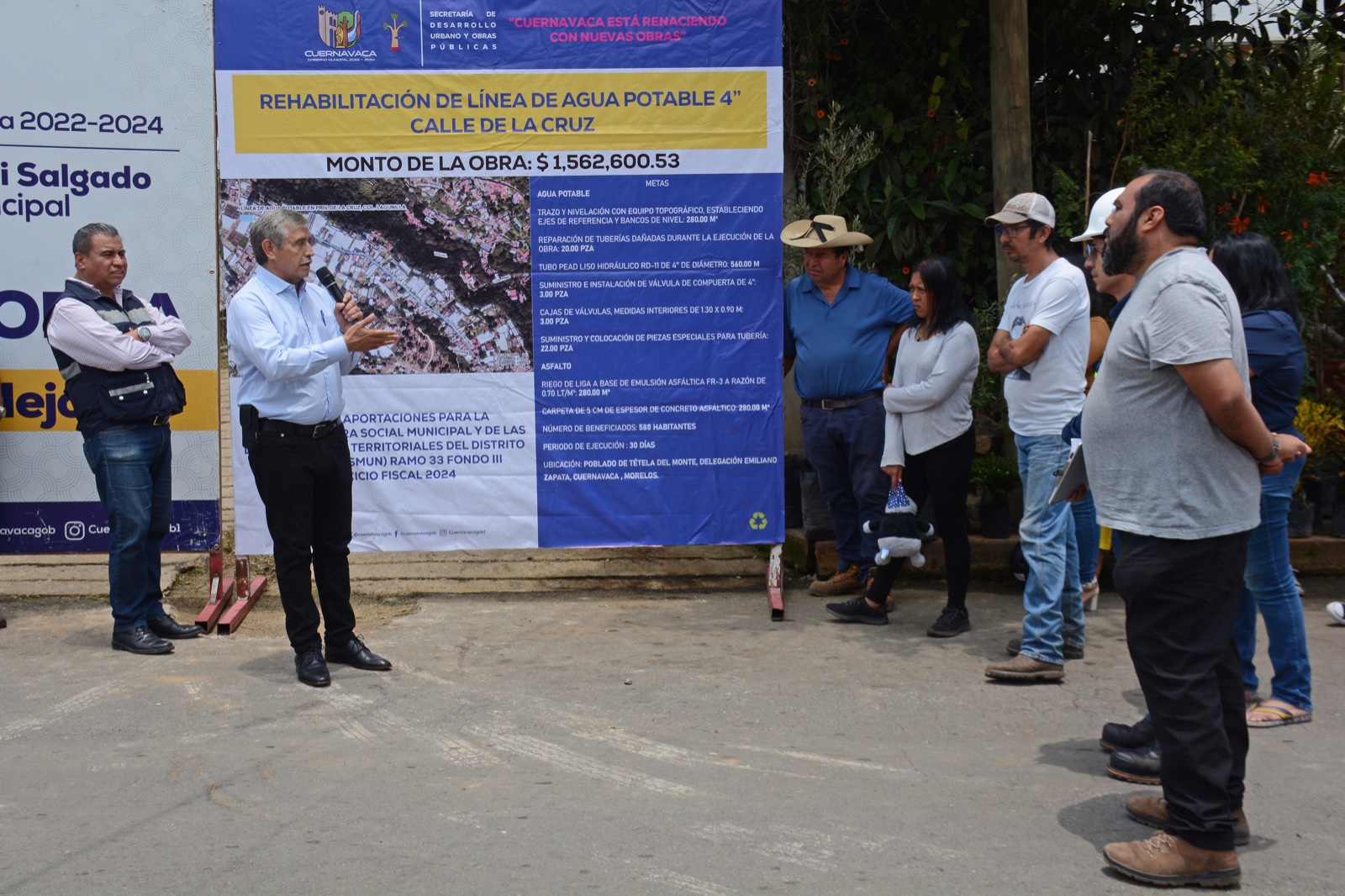 Como parte de las acciones que buscan garantizar el derecho al agua en cantidad y calidad, el presidente municipal de Cuernavaca, José Luis Urióstegui Salgado, encabezó el inicio de los trabajos de rehabilitación de la línea de agua potable de cuatro pulgadas en calle La Cruz en el poblado de Tetela del Monte, que beneficiará a casas habitación y también a los productores de flores de ornato que aquí comercializan de manera tradicional.