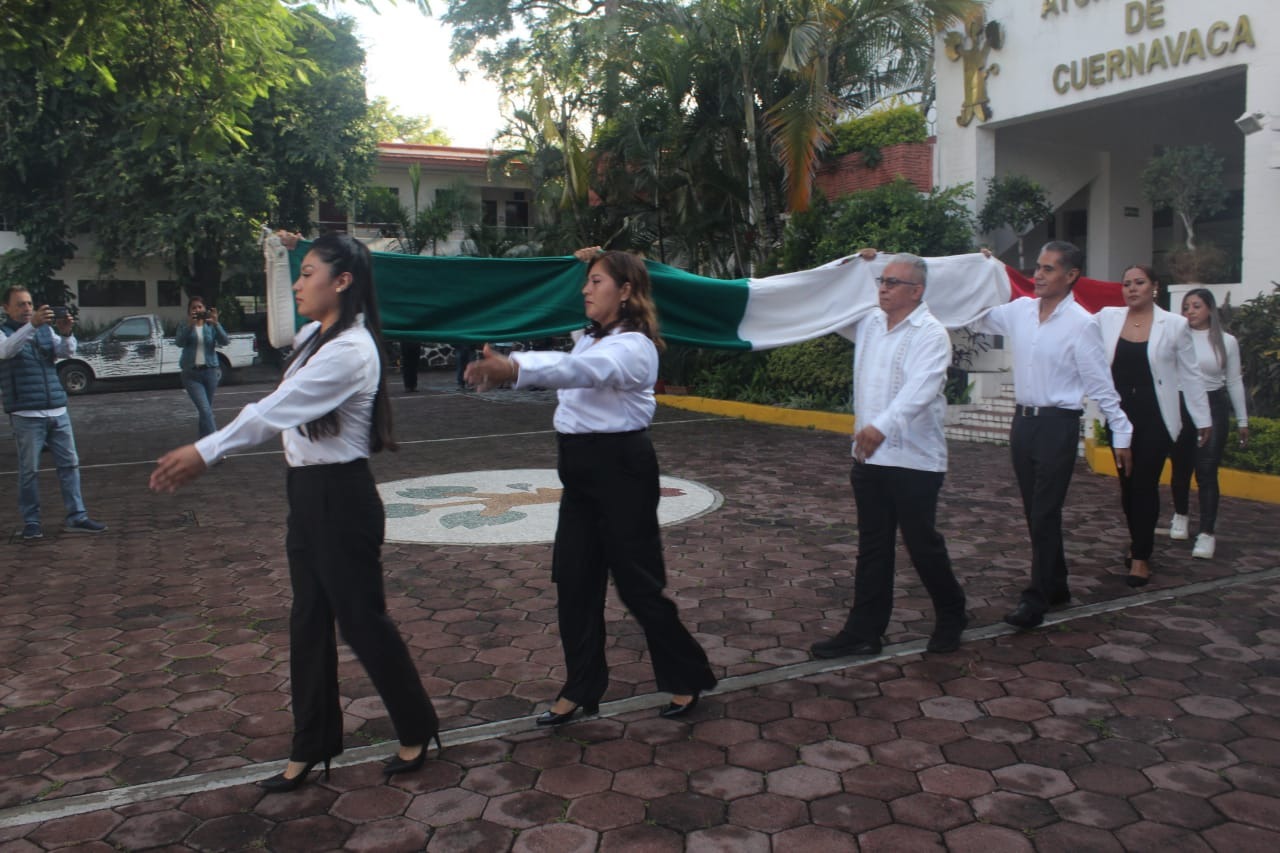 Para fortalecer los valores cívicos en la ciudad, este martes se llevó a cabo la ceremonia de izamiento de bandera en la explanada principal de la sede Papagayo del Ayuntamiento de Cuernavaca, la cual estuvo encabezada por el regidor Christian Mishell Pérez Jaimes y la secretaria de Desarrollo Humano y Participación Social, Laura Hernández Cruz y