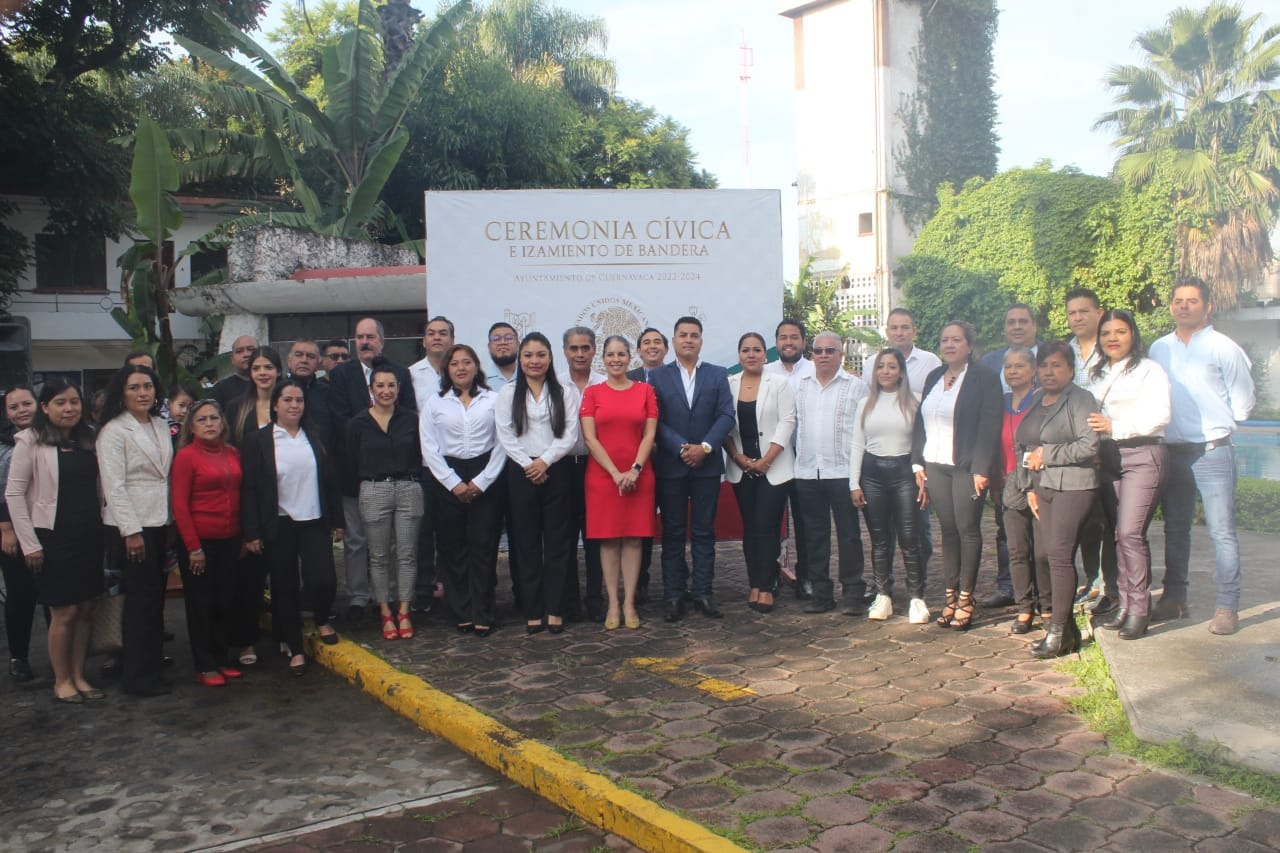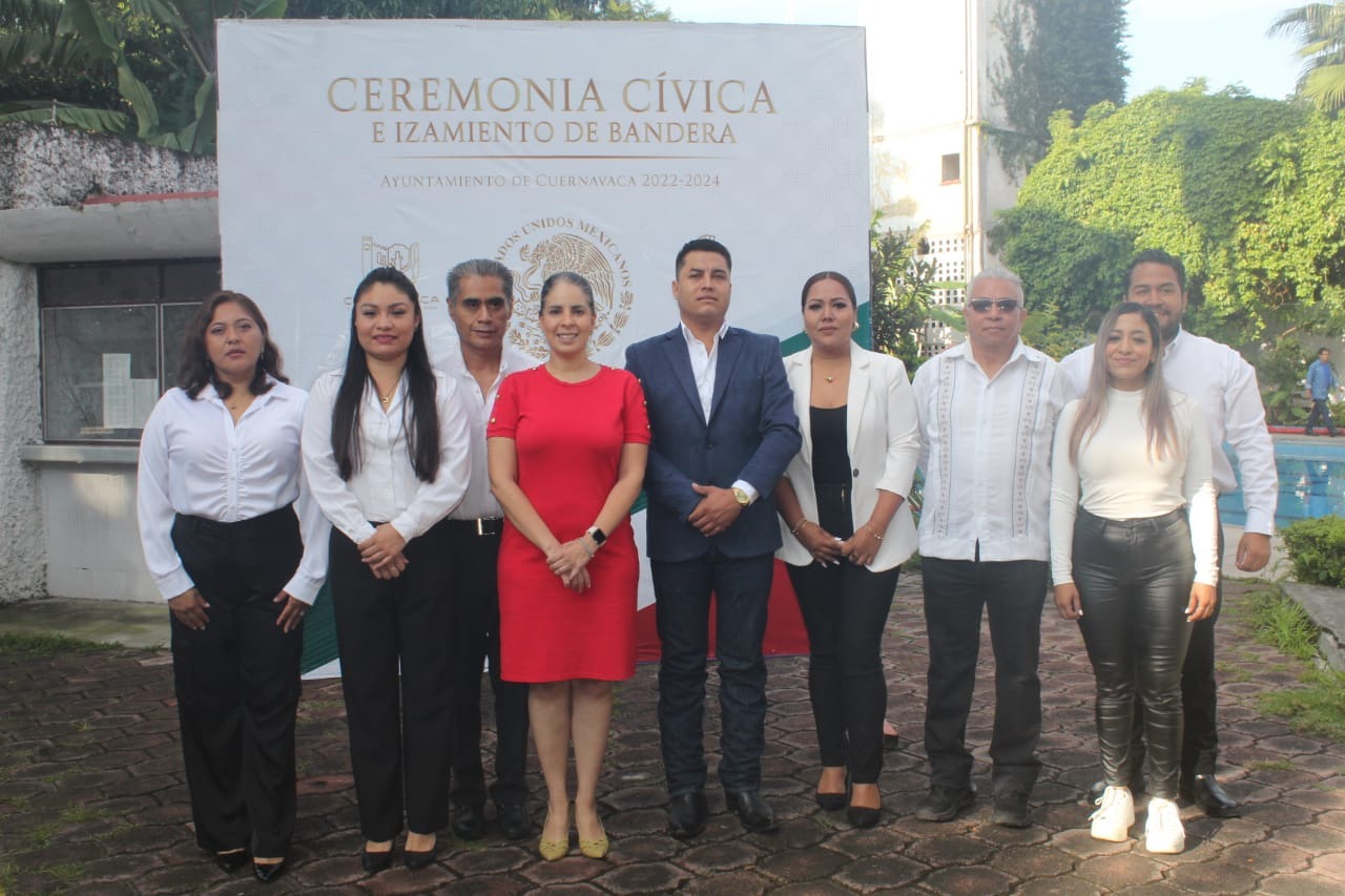 Para fortalecer los valores cívicos en la ciudad, este martes se llevó a cabo la ceremonia de izamiento de bandera en la explanada principal de la sede Papagayo del Ayuntamiento de Cuernavaca, la cual estuvo encabezada por el regidor Christian Mishell Pérez Jaimes y la secretaria de Desarrollo Humano y Participación Social, Laura Hernández Cruz y