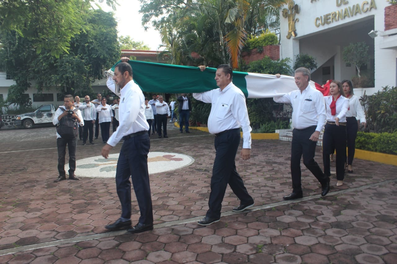 En la explanada de la sede Papagayo del Ayuntamiento de Cuernavaca se llevó a cabo este acto presidido por la síndica municipal, Catalina Verónica Atenco Pérez y el secretario de Desarrollo Económico y Turismo, Humberto Paladino Valdovinos, quienes estuvieron acompañados de directivos y personal adscrito a sus dependencias.