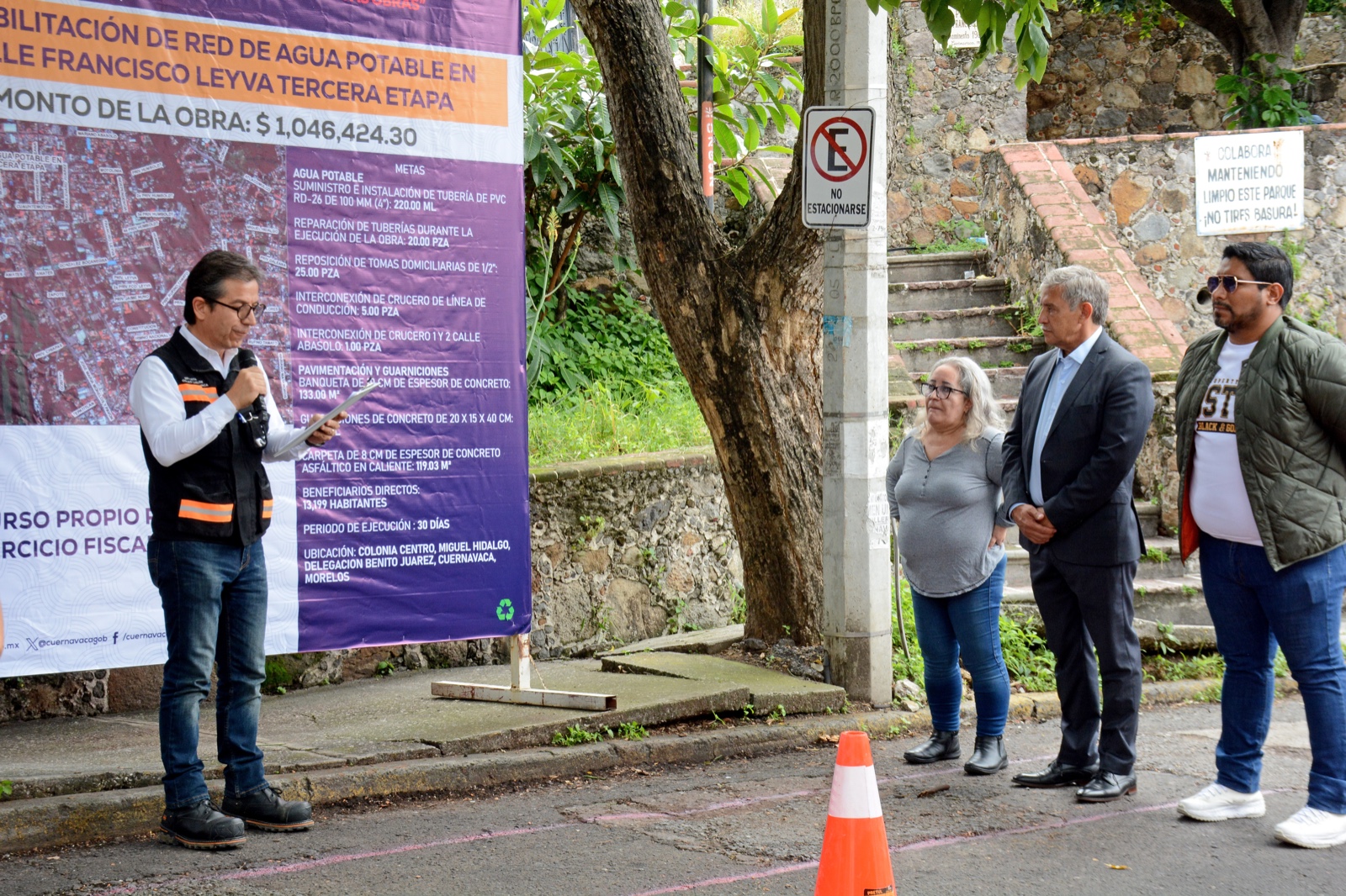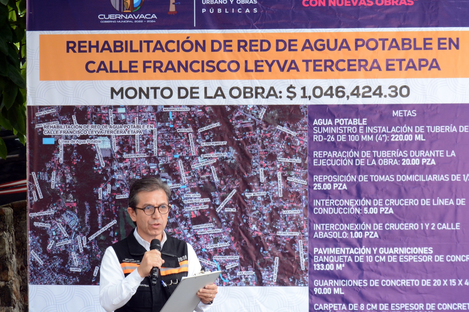 Con una inversión de un millón 046 mil 424.30 pesos proveniente del Fondo de recursos propios municipales, el presidente municipal de Cuernavaca, José Luis Urióstegui Salgado, dio este jueves el banderazo de arranque a la obra de rehabilitación de la red de agua potable en calle Francisco Leyva tercera etapa, con la cual se continuará garantizando un abastecimiento de agua en la capital morelense, beneficiando a 13 mil 199 habitantes.