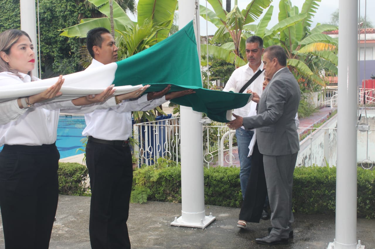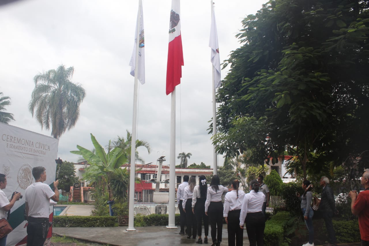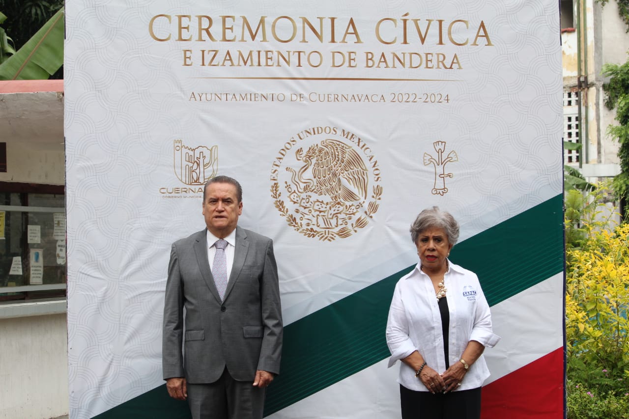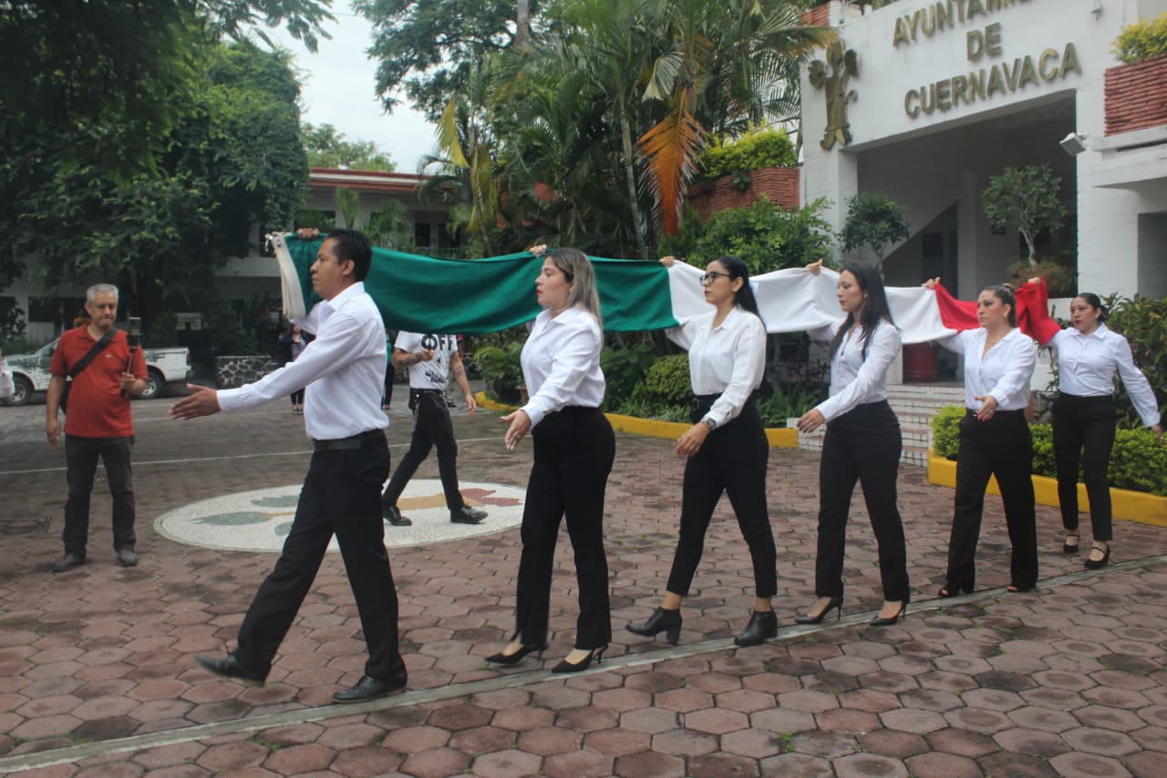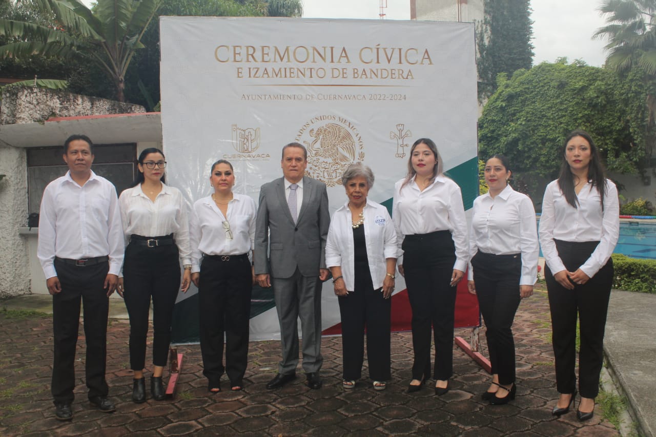 En conmemoración del CCXIV Aniversario del Inicio de la Independencia de México, la directora general del Sistema de Agua Potable y Alcantarillado de Cuernavaca (SAPAC), Evelia Flores Hernández y el regidor Víctor Manzo Godínez, encabezaron este viernes la ceremonia de izamiento y honores al lábaro patrio en la sede Papagayo del Gobierno Municipal.