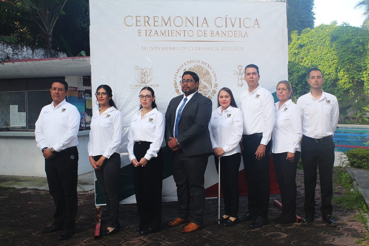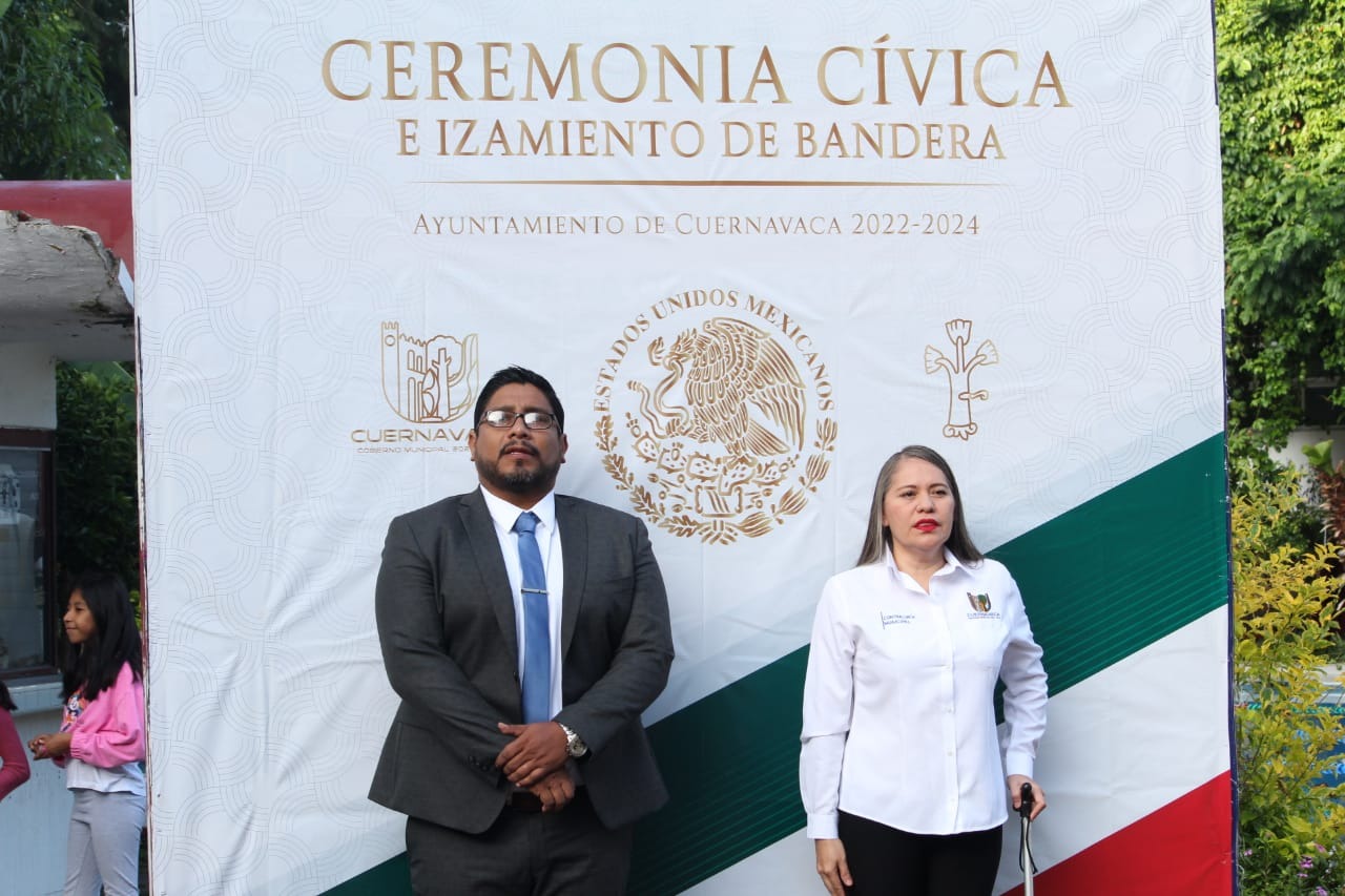 Para fortalecer la cultura cívica en Cuernavaca, la contralora municipal, Dolores Álvarez Díaz y el regidor Fernando Carrillo Alvarado, encabezaron este sábado la ceremonia de izamiento y honores a la bandera en el marco de conmemoración del CCXIV Aniversario del Inicio de la Independencia de México.