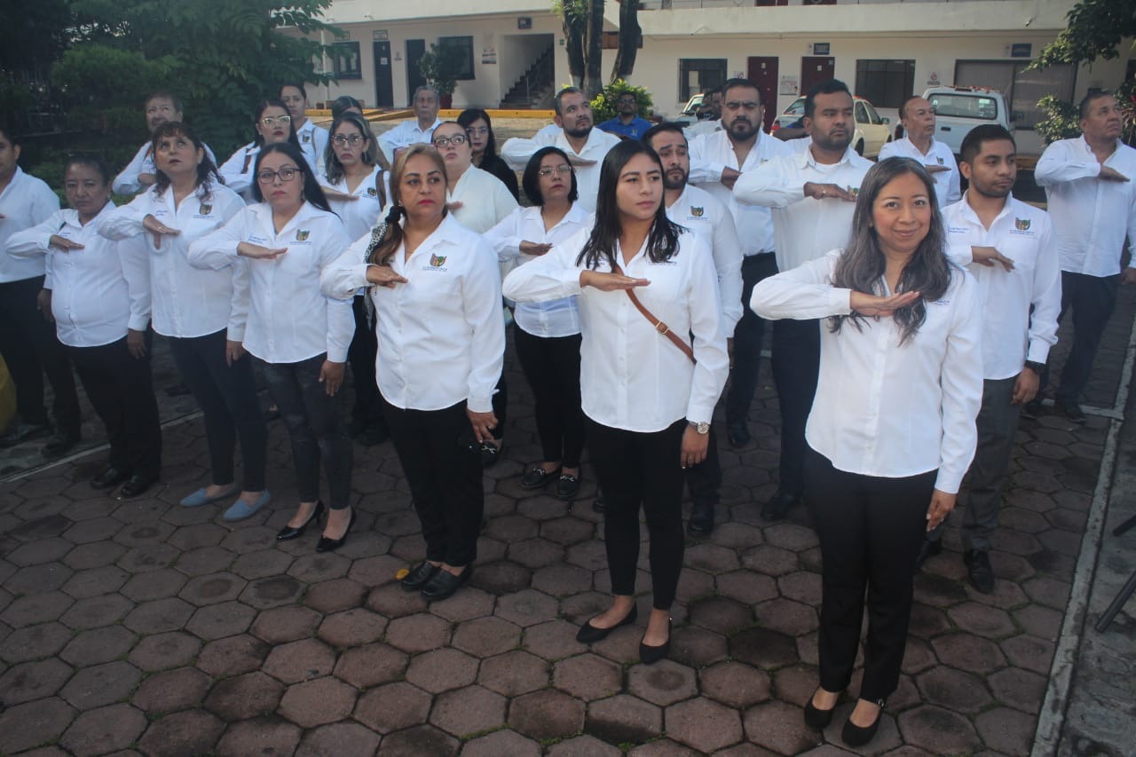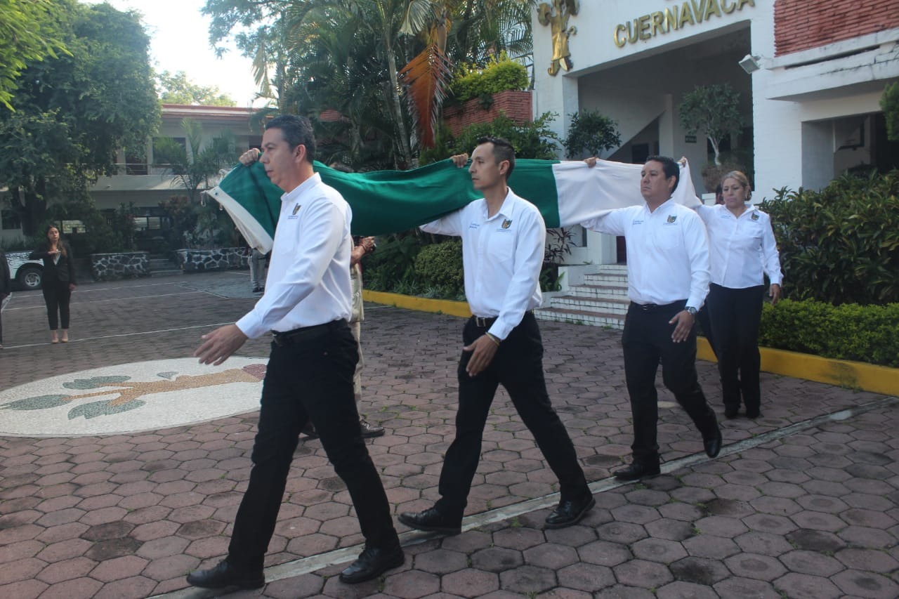 En la explanada de la sede Papagayo del Ayuntamiento de Cuernavaca, personal adscrito a la Contraloría Municipal y a la Regiduría de Servicios Públicos Municipales y Turismo entonaron el Himno Nacional Mexicano, estando a cargo de la escolta la Contraloría Municipal.