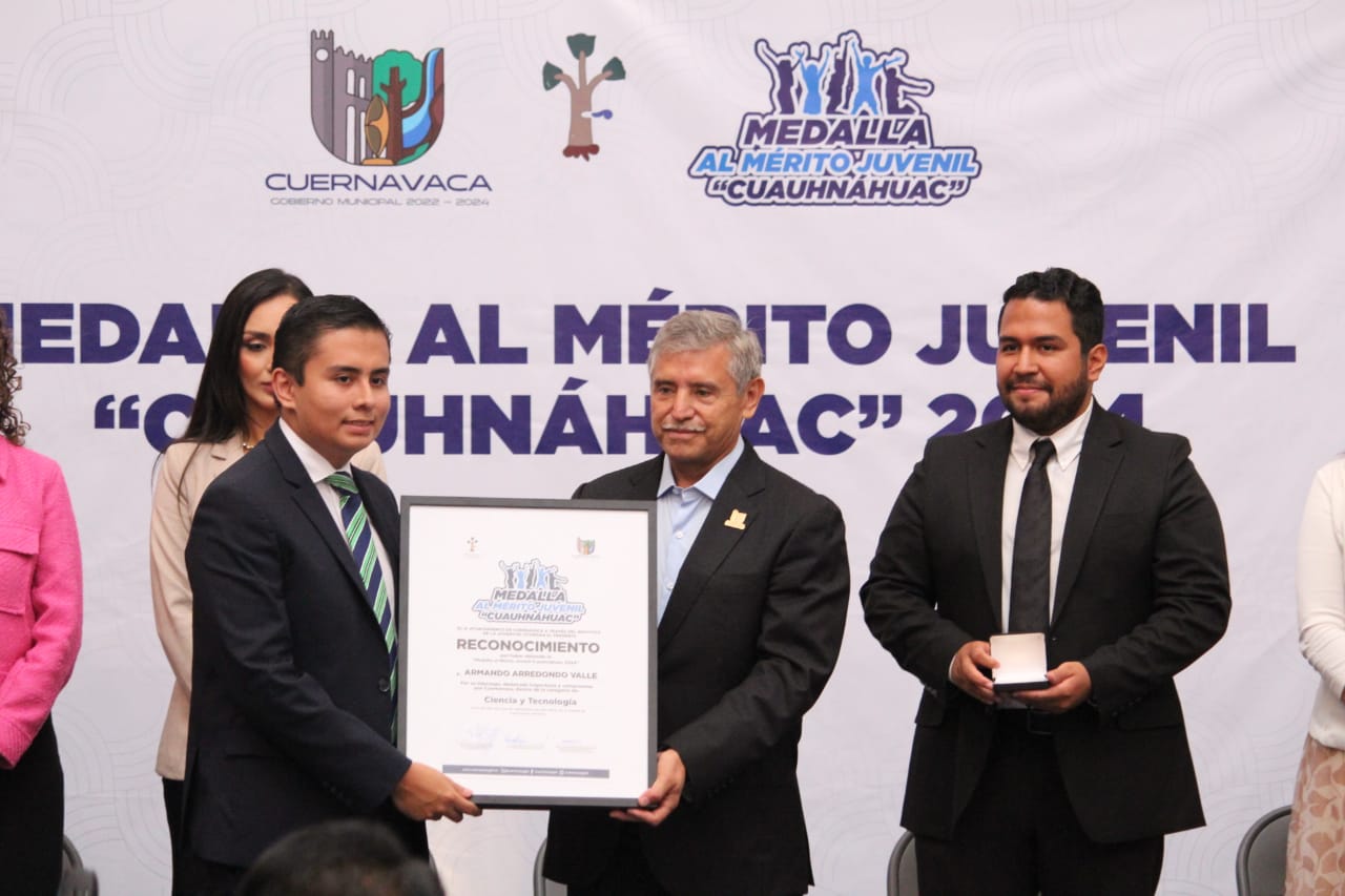 La medalla al Mérito Juvenil “Cuauhnáhuac” fue otorgada en la categoría de Medio Ambiente a Ángel Salvador Ortega Catalán, en Ciencia y Tecnología a Armando Arredondo Valle, en Humanidades a Raquel Ameyari Reyes Vargas, en Cultura y Arte a Yoab Esaú Domínguez Sánchez, en Deporte a Zaira Paulina Salgado Landa, en Innovación a Elizabeth Paulina Arévalo Sandoval, en Emprendimiento a Fernanda Hernández por Falon Store, en Inclusión a Octavio Daniel González Salinas y en Desarrollo Comunitario a Hertino Avilés Soto y Pata Club Desarrollo Infantil, representado por Enrique Gerardo Lima.